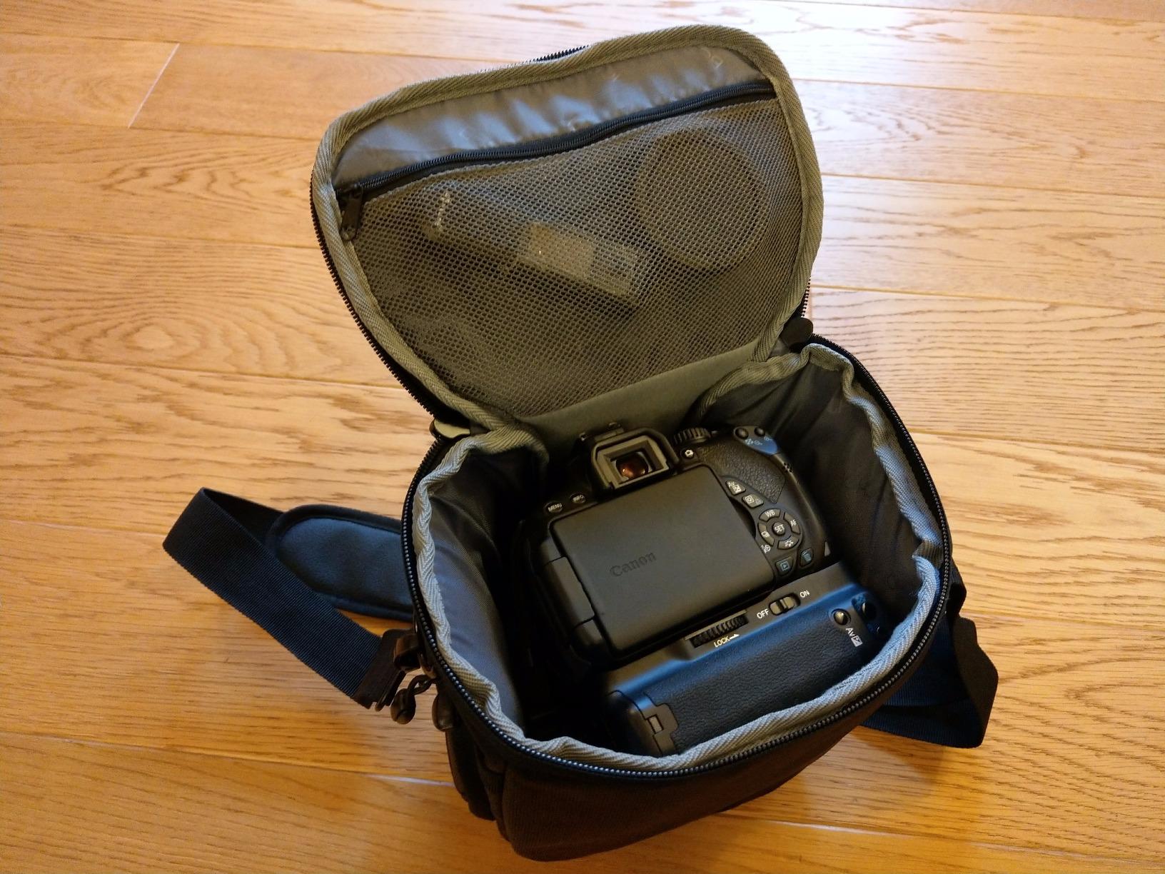 This bag looked like it would also take my camera with it's battery grip attached, so when I tried it for the first time I was please that it did fit. Others bags that I'd seen looked too small. The bag is quite accomodating so I had no problems fitting them in. I did have to remove the insert to achieve this, but this is a small sacrifice to make. The insert is useful if you detach the lens from the camera as it acts as a protective barrier between the body and the lens.