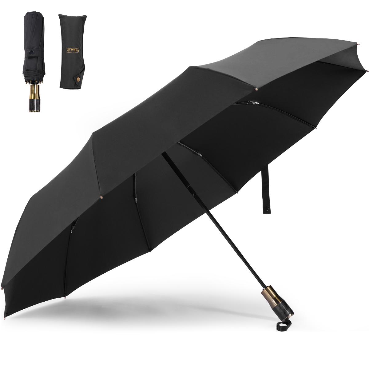 - * Durable, Rust-proof Construction: This folding umbrella is an investment in quality. The frame is engineered with a rust-proof alloy shaft and resilient fiberglass ribs, ensuring it won't break or corrode like cheaper models. The fiberglass, non-slip handle is built for a comfortable grip and long-term reliability.
