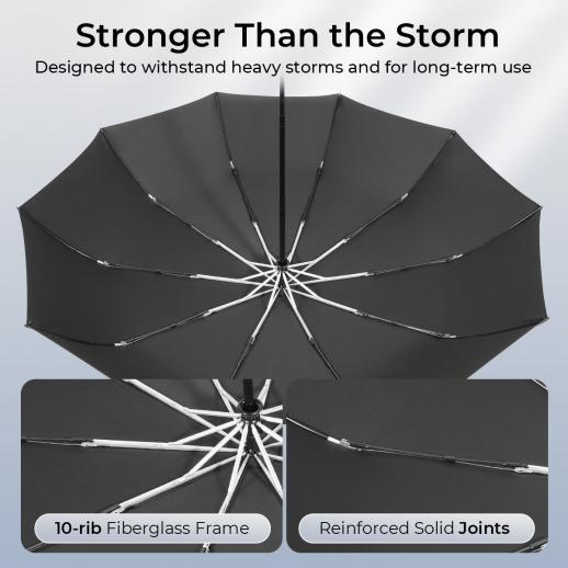 - * Windproof & Instant-dry Canopy: Built to defy the elements with 10 flexible fiberglass ribs that resist strong winds without inverting. The high-density pongee fabric is exceptionally water-repellent; a single shake is all it takes to shed raindrops, ensuring your umbrella dries instantly and won't create a mess indoors.