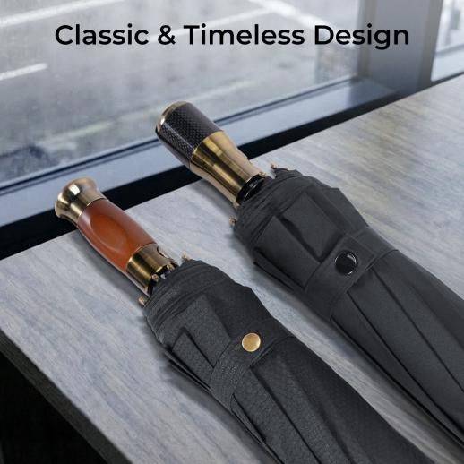 Choose your perfect companion: the timeless elegance of a solid wood handle paired with a subtly patterned canopy, or the modern, high-performance feel of a sleek carbon fiber handle and minimalist design. Both offer a secure, no-slip grip for confident handling, ensuring you stay dry and composed, even when the storm hits hardest.