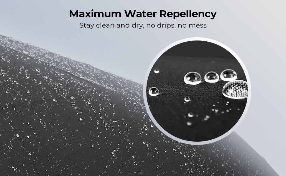 The canopy is crafted from a superior high-density pongee cloth, a material far more durable and water-repellent than ordinary polyester. With its "shake-to-dry" technology, rain dances right off the canopy rather than soaking through, leaving it up to 4x drier than others, so it won't create a soggy mess when you bring it indoors.