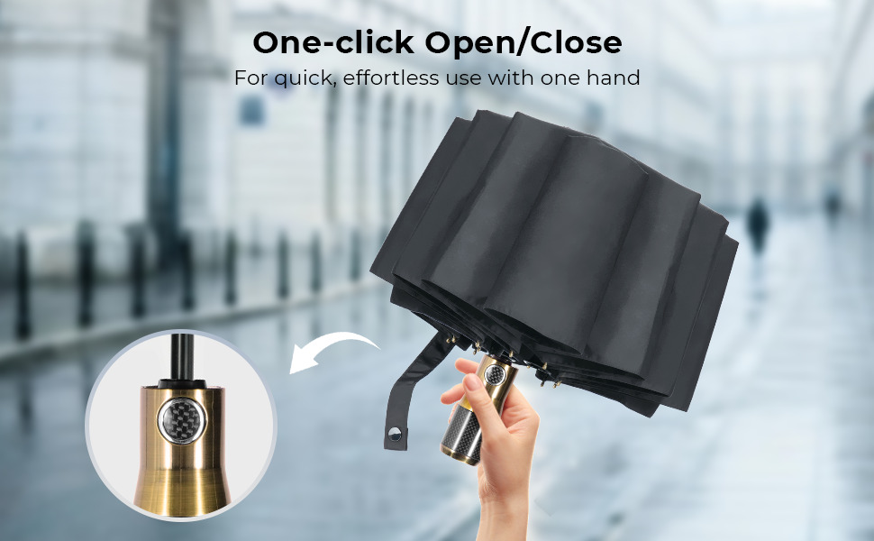 - * One-touch Auto Open & Close: Caught in a sudden downpour? The handle of our windproof umbrella features a convenient, one-touch button. With a single press, it instantly deploys and retracts the canopy. This allows for easy one-handed operation when your other hand is busy with a bag, phone, or coffee.