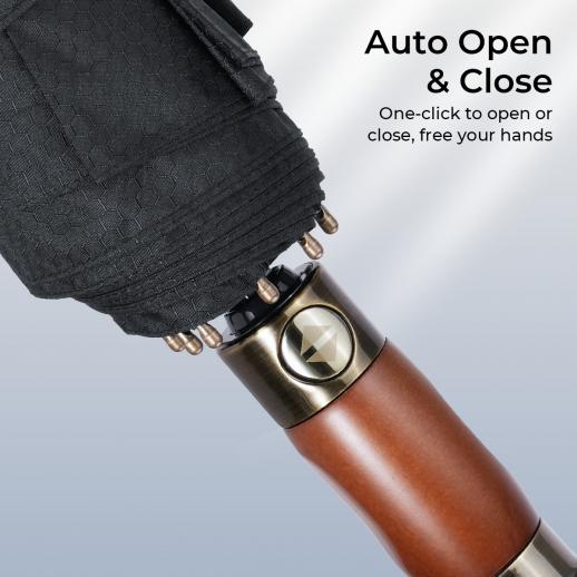 - * One-touch Auto Open & Close: Caught in a sudden downpour? The handle of our windproof umbrella features a convenient, one-touch button. With a single press, it instantly deploys and retracts the canopy. This allows for easy one-handed operation when your other hand is busy with a bag, phone, or coffee.
