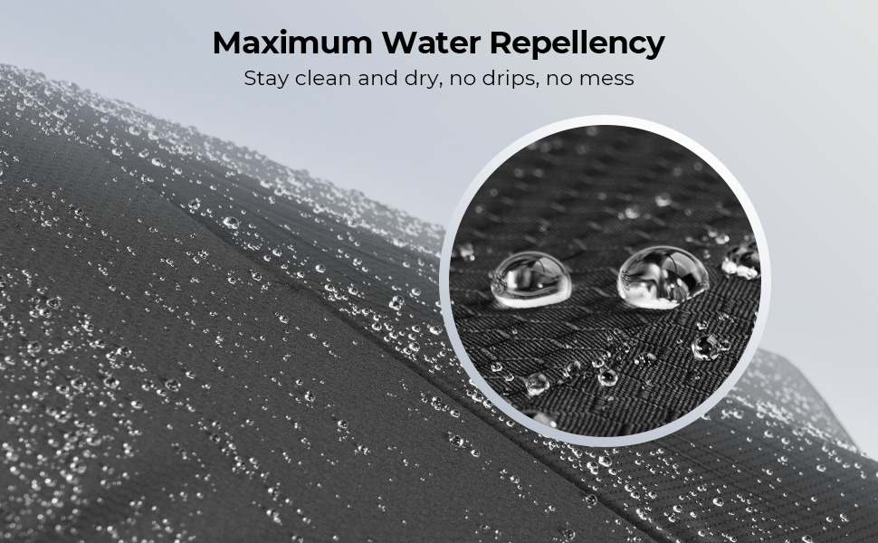 Each panel of the canopy is sewn together with the highest-grade waterproof thread, with up to 10 stitches per inch. Exposed to heavy rain for over 1 hour, the rainwater will not penetrate the umbrella.