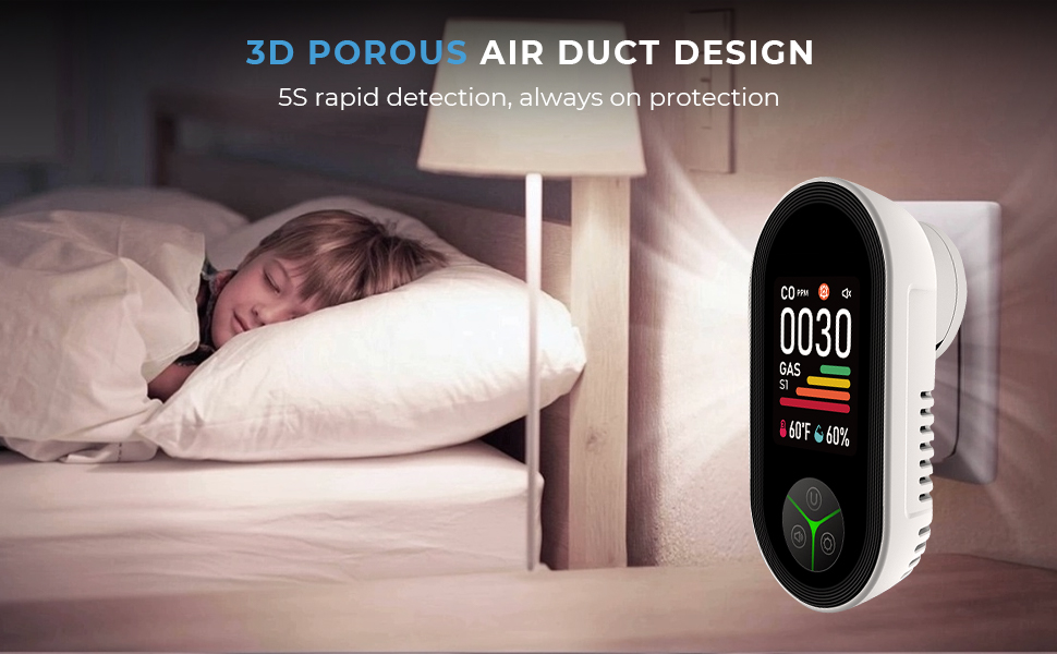 Kentfaith portable CO monitor's advanced 3D porous air duct accelerates airflow for faster, 5-second detection and greater sensitivity. Every breath is monitored with precision, giving you early warnings and peace of mind that your loved ones are always safe and protected.