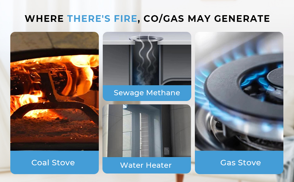 - Protect your home and workspace with our carbon monoxide gas detector. It detects carbon monoxide and combustible gases, while also monitoring temperature and humidity in real-time. Perfect for living rooms, kitchens, bedrooms, offices, garages, warehouses, RVs, hotels, and more. Fast, reliable alerts keep you safe 24/7.