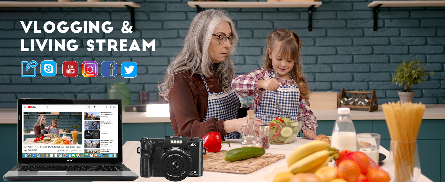 - * 【4K Camera for Youtube】: This YouTube camera can be used as webcam for live streaming or video call just by connecting the PC with USB cable,allows you to easily use it on Facebook, Twitter.Equipped with a hot shoe can connect an external fill light, supports external 1/4 standard size tripod.(Note: When you connect this small camera to your PC and it functions as a webcam, you do not have access to all the camera features)