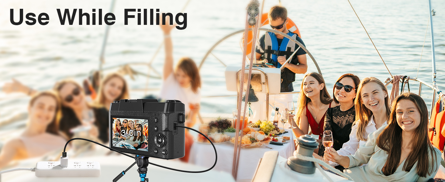 - * 【Camera with Multifunction】: Digital camera with 3 inch LCD screen adds autofocus (press the shutter lightly), video camera has more plays: 16X digital zoom,continuous shooting, self-timer, internal microphone and speaker(record sound videos), pause function, saving video production time!