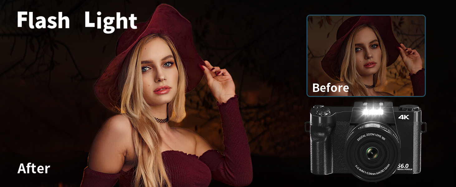 - * 【Digital Cameras for Photography and Video with 4K/56MP】:This point and shoot camera equipped with CMOS sensor that can captures vivid 4K videos and amazing 56MP pictures,and vlogging camera with flash can let the record cultural landscapes clearer in the darker!