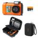 33ft/10m Waterproof Camera 4K 48MP HD Photos & Videos with Dual-Screen for Snorkeling, Surfing, Swimming, Waterproof Camera for Kids, Adults, includes EVA Storage Case, Orange