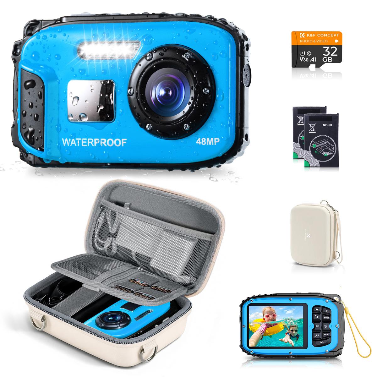 Underwater Camera for Kids 4K 48MP, 10FT/3M Waterproof, Dual Screen, for Snorkeling Swimming Kentfaith