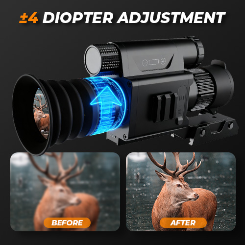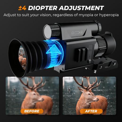 With ±4 diopter adjustment, this night vision scope easily adapts to your eyesight—no glasses needed. Simply fine-tune the focus to match your vision and enjoy a sharp, comfortable view every time.