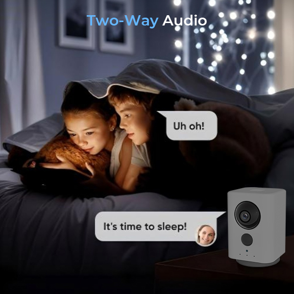 - Our wireless security camera feature a noiseless microphone and speaker for instant two-way communication. Easily chat with families, pets, visitors, or deter unwanted visitors using your phone, ensuring you stay connected and protect your property, wherever you are.
