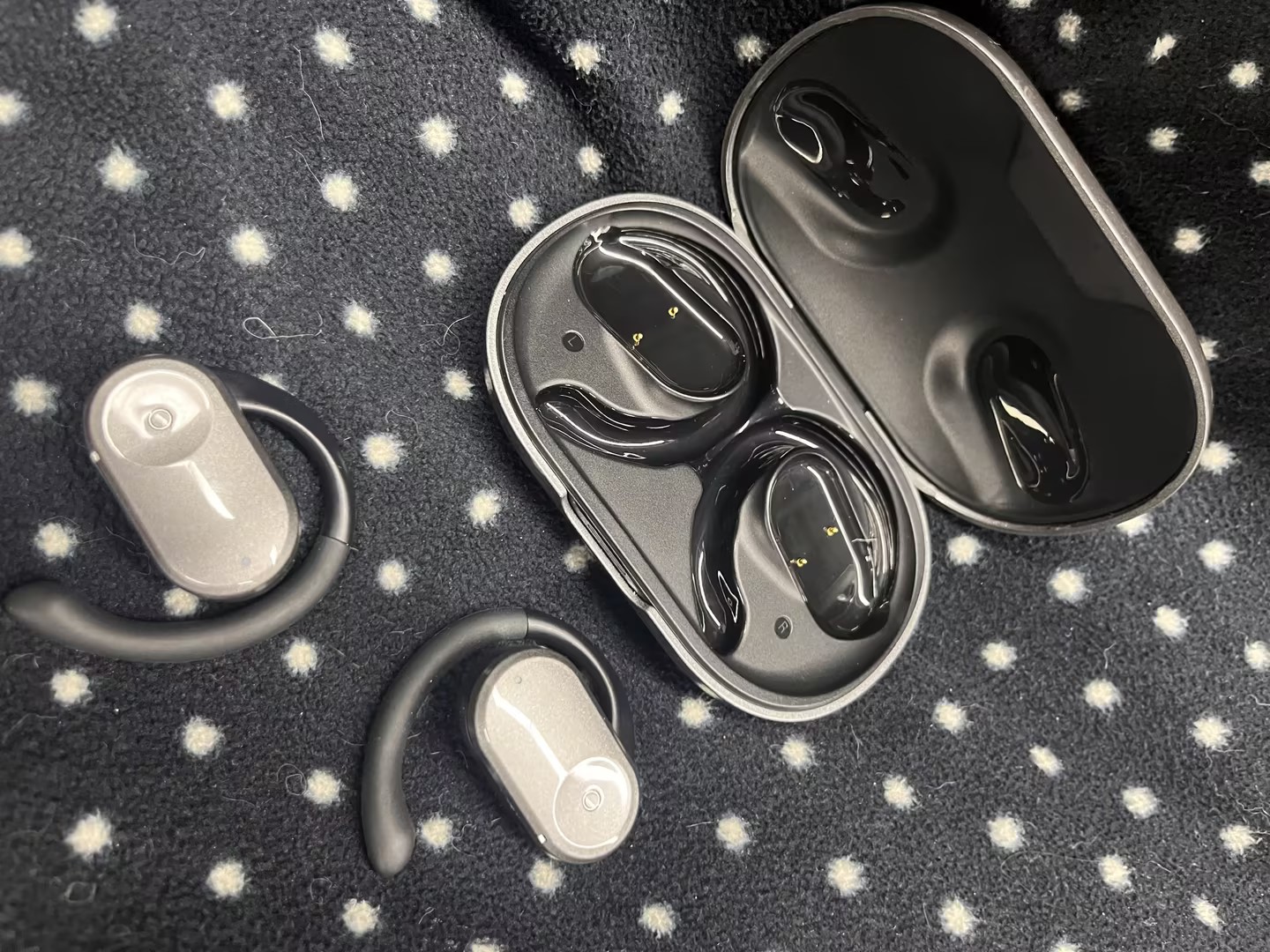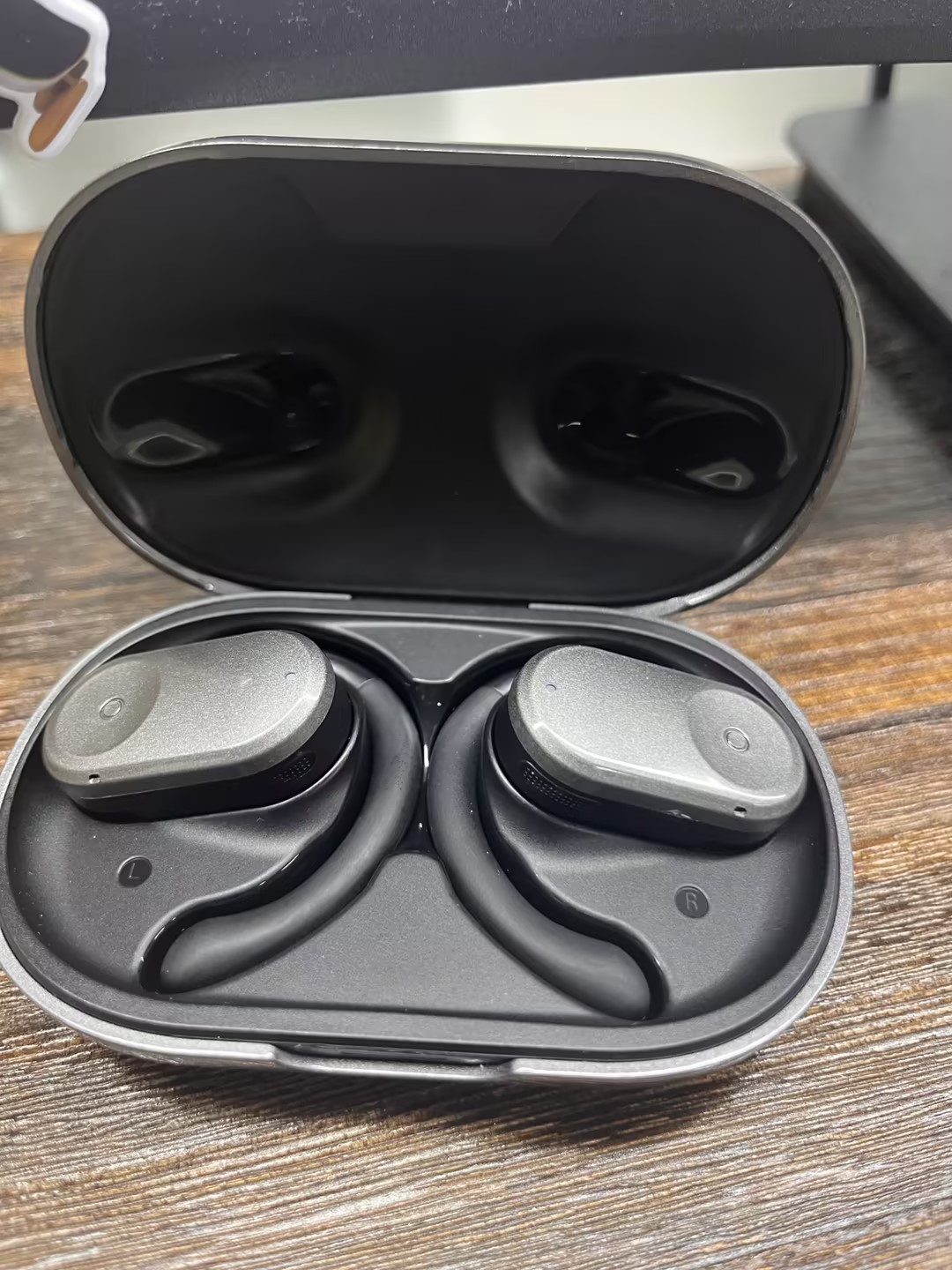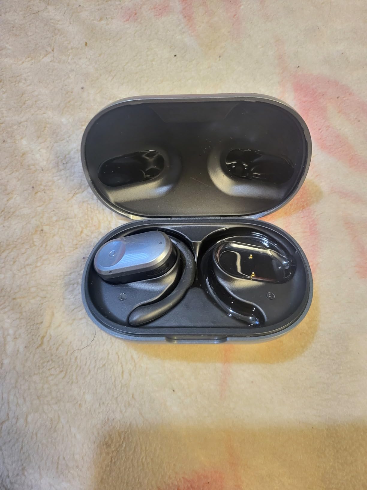 The design of this open ear earbugs works well for that, i can hear my music clearly while still being aware of my surroundings. They sit securely on my ears and i don’t have to keep adjusting them even during longer runs. Battery life has been nice. I usually listen for a couple of hours a day and i only need to charge the case every few days. The quick charge has come in handy. The sound is clear especially for this style of earbuds. They’ve held up fine against sweat and light rain and the case is compact enough to slip into my pocket. So far, they’ve been a good fit for both workouts and daily use!!