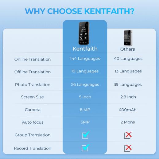 - Beyond real-time voice and photo translation, Kentfaith instant translation device is packed with intelligent features to keep you informed and connected: