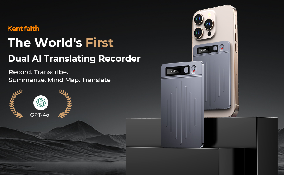 - * Advanced AI Technology: Powered by advanced AI, this Kentfaith AI voice recorder offers fast translation, leveraging engines co-developed with ChatGPT-4o and DeepSeek to turn speech into text accurately, plus auto-generate smart summaries and mind maps. Kentfaith's exclusive two-way translation feature makes cross-language chats a breeze.