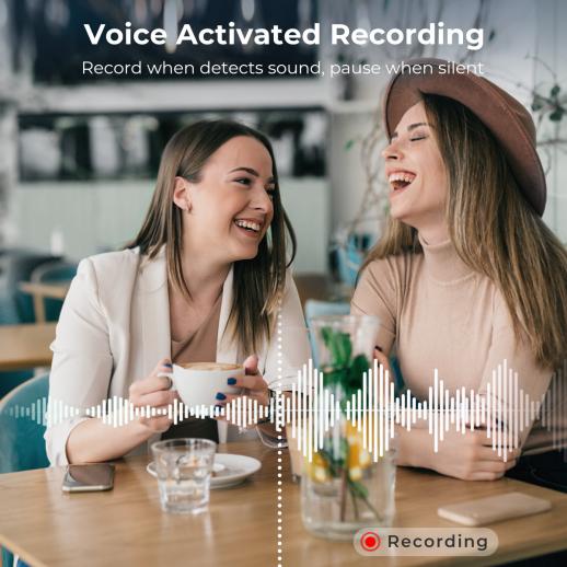 - · Voice Activation: Starts recording only when it hears sound—no more wasting space on silent gaps (saves battery and storage!).