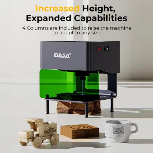 Don't let size limit your creativity. This mini laser engraver includes a unique four-column design. Simply attach the columns to raise the engraver, providing ample clearance for larger and taller items. Perfect for tackling those ambitious projects!