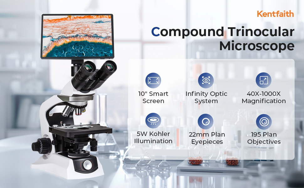 - Packed with advanced features at a cost-effective price, Kentfaith professional microscope is a smart choice for higher education and professional biological applications. From accurate color reproduction for cytology and pathology to high-resolution imaging for clinical lab work, it delivers reliable performance for both research and routine testing. Advanced Features: