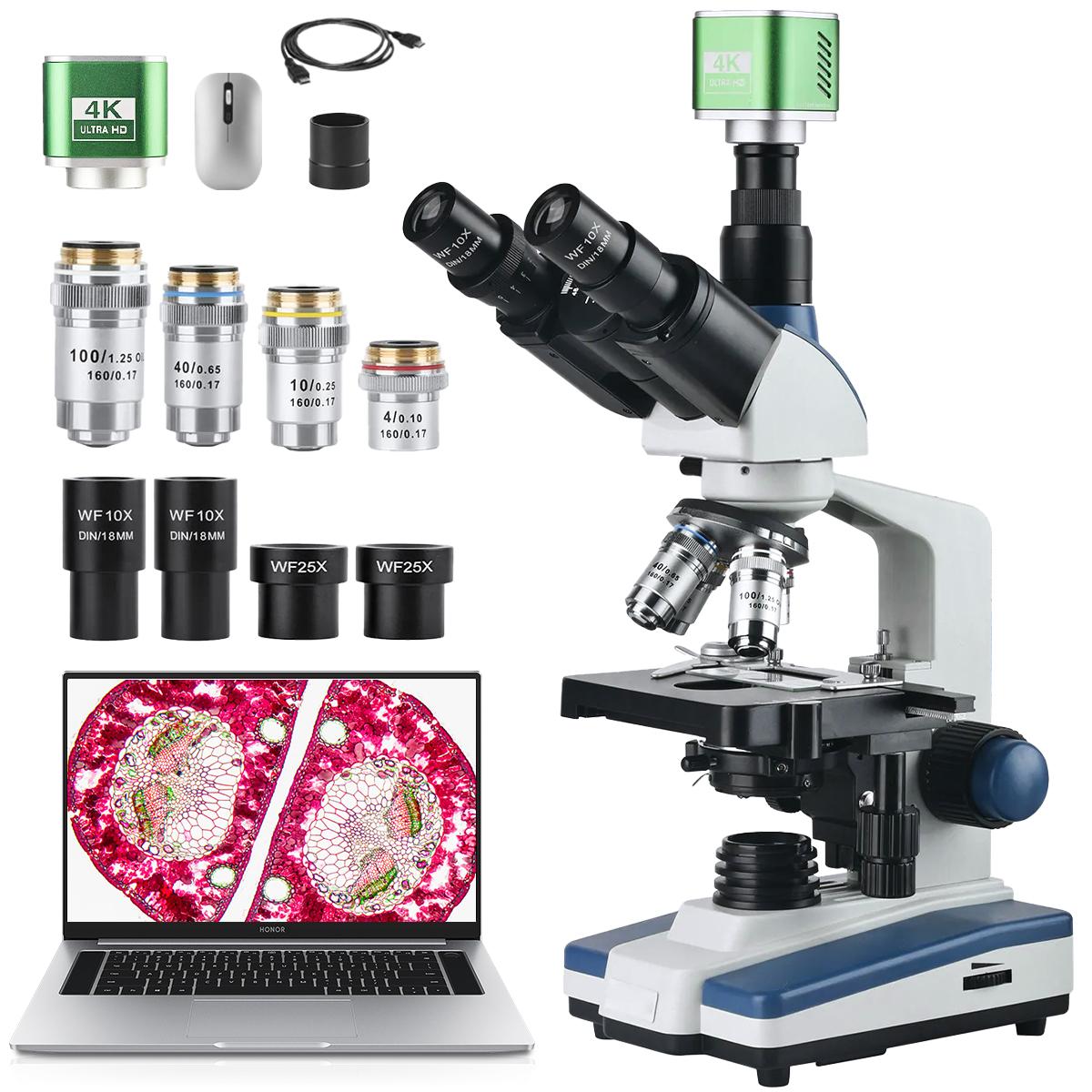 Compound Microscope with 4K Camera, 40X-2500X Magnification, PC Connection, Plan Optical System, Mechanical Stage, Kentfaith