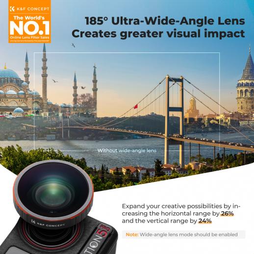 - * [Expands to 185° Ultra-Wide Field of View]: Capture breathtaking, immersive footage with an ultra-wide 185° FOV, perfect for action sports, vlogging, and travel. It allows you to fit more scenery and subjects into every shot, enhancing creativity and visual impact.