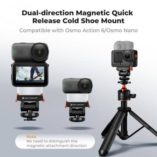 K&F CONCEPT Cold Shoe Mount Compatible with DJI Osmo Nano/Osmo Action 6, Action Camera Magnetic Quick Mount Holder, Tripod Adapter Hot Shoe Camera Connector with 1/4