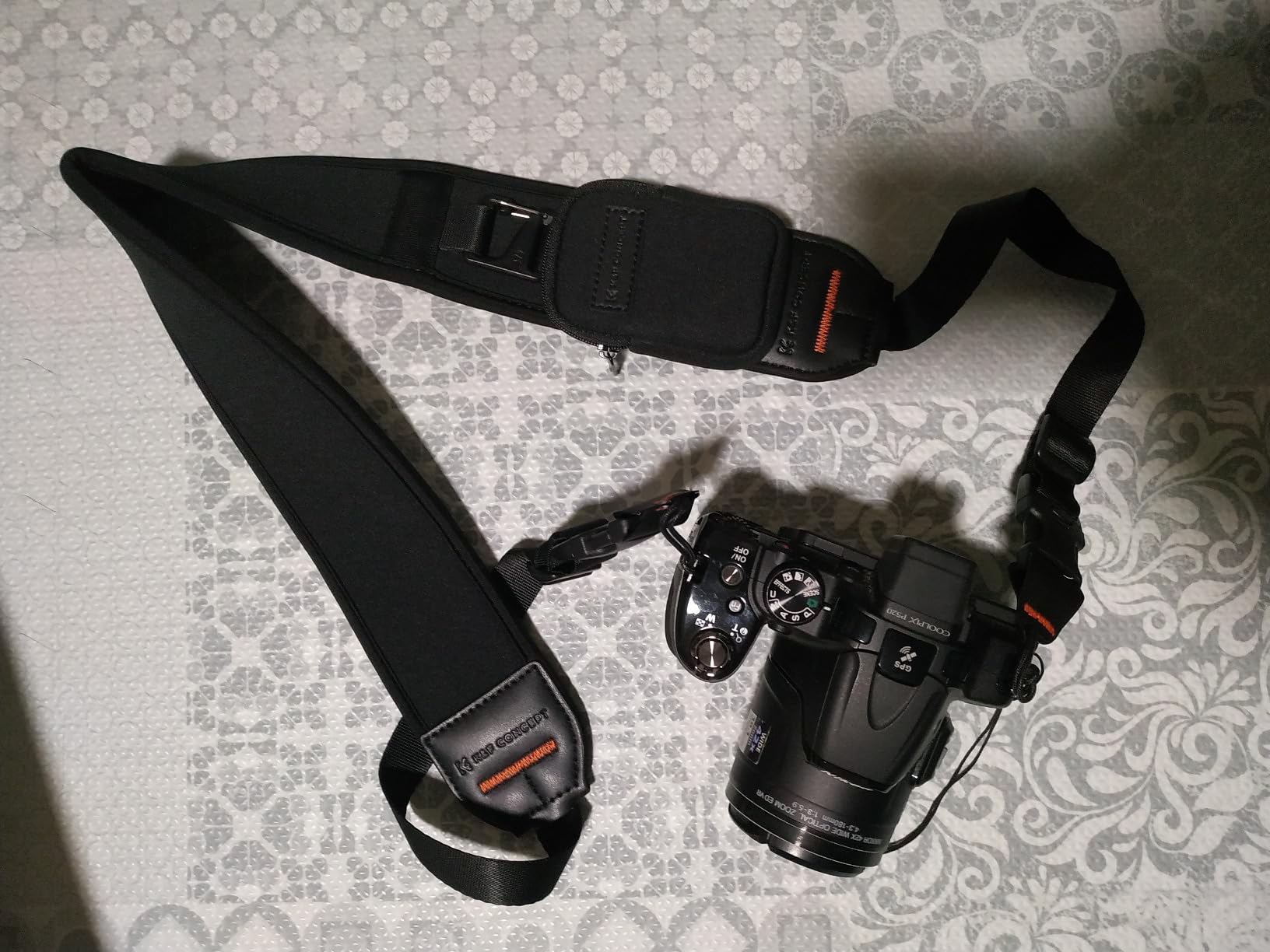 I bought this camera strap for my old Nikon bridge camera and it's been working well for me. I like that it's adjustable and has a quick-release clip, which makes it easy to use. The strap is also comfortable to wear and the material feels durable. I also appreciate the extra pocket for storing small accessories. My only issue is that the buckle can be a bit hard to open, but that's not a big problem.
