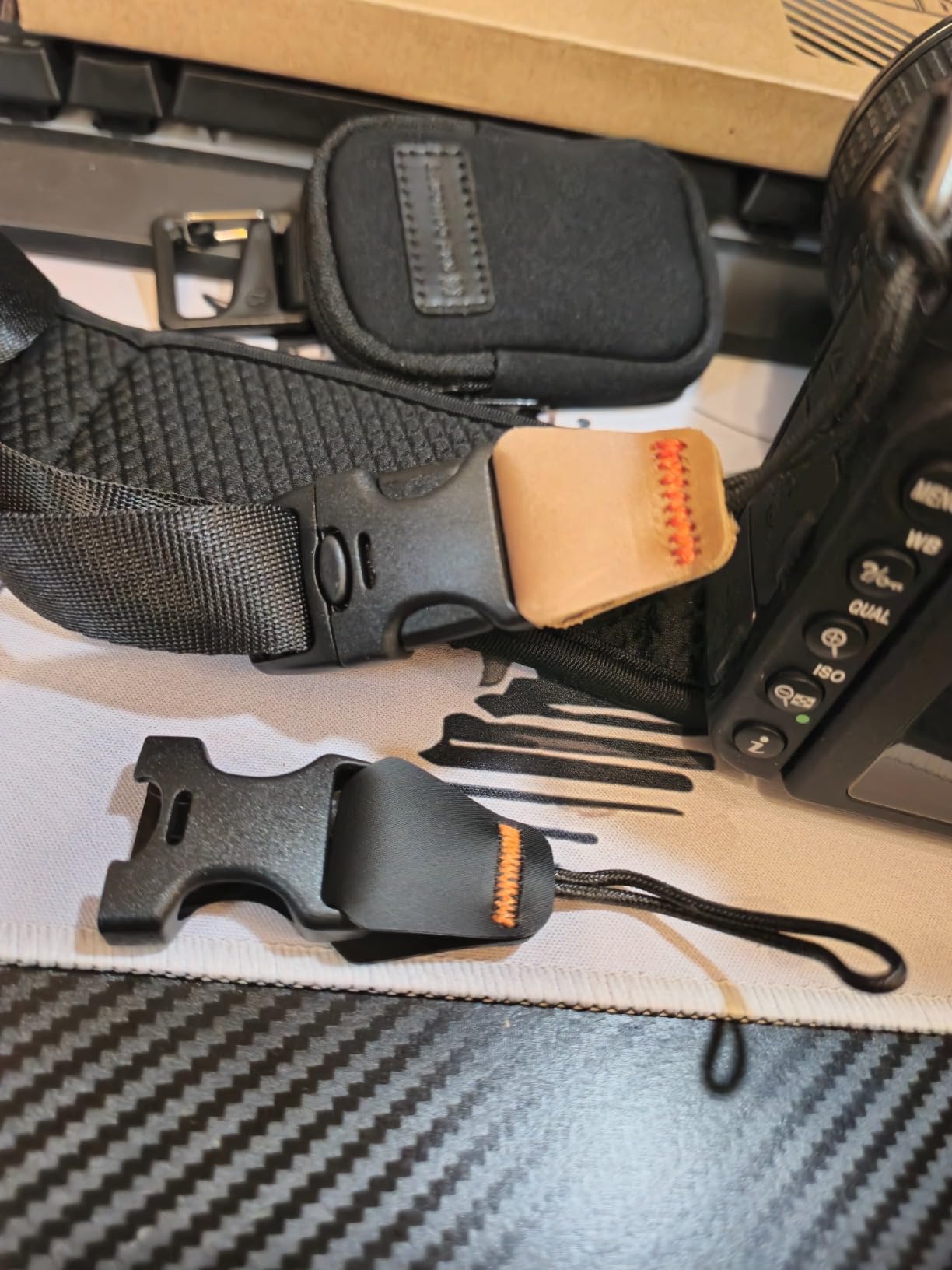 - * 【Durable Dyneema Triple-Weave Cord】Compatible with most cameras, it includes a safety alert feature. Comes with a complimentary pair of anti-scratch leather stickers and metal rings to fit a wider range of cameras.