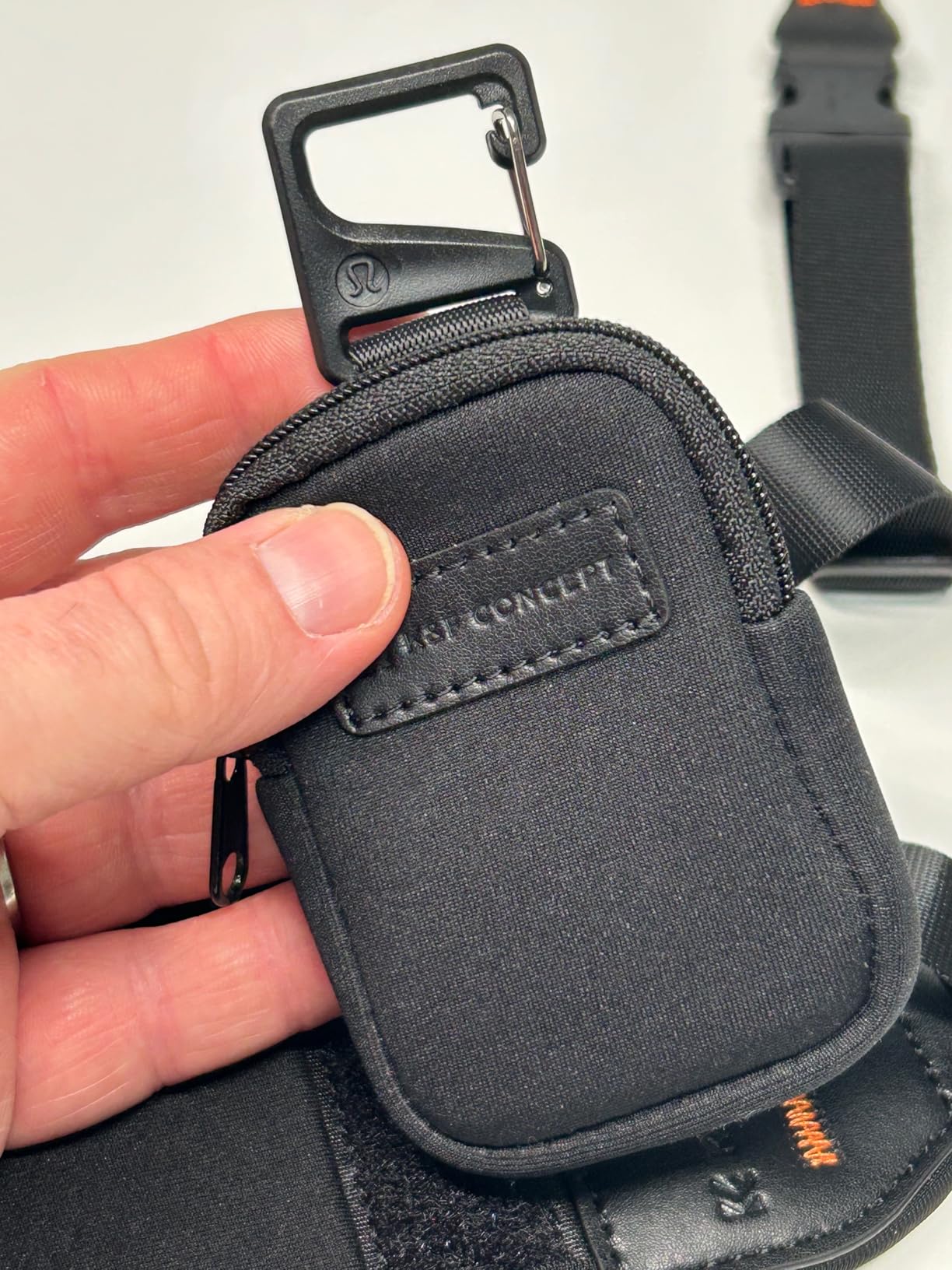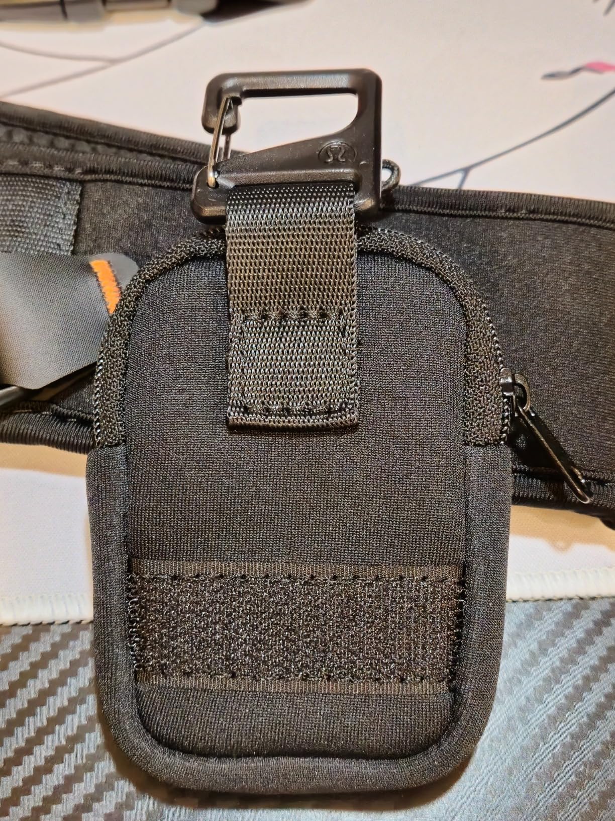 There's a detachable pocket for you to carry a spare battery or batteries. The pocket attaches via a clip, but it also has Velcro on the back. This will prevent it from moving around as you walk or run.