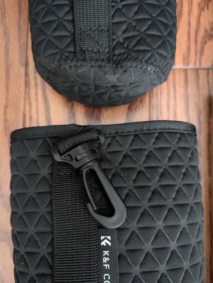 The K&F Concept Camera Lens Pouch set looks and feels well put together, with clean and even stitching with materials that give a decent sense of durability without feeling overly bulky. The drawstring closure is smooth to operate and holds fairly well for my needs but is not quite pro quality standard in terms of closures. The interior lining is soft enough to prevent scratches, and the offers reasonable protection against minor bumps or knocks, though this isn’t something you’d want to rely on for serious impact resistance on any lens. I think a bit more padding would have been nice.