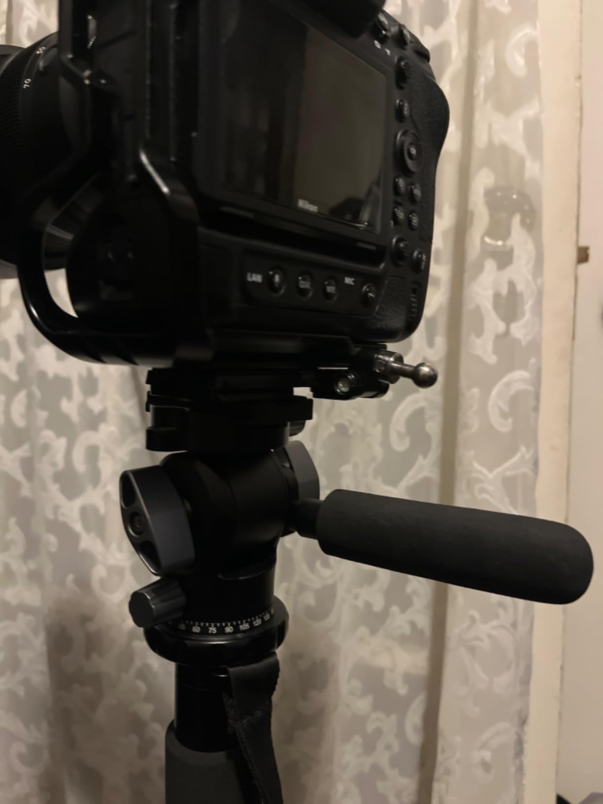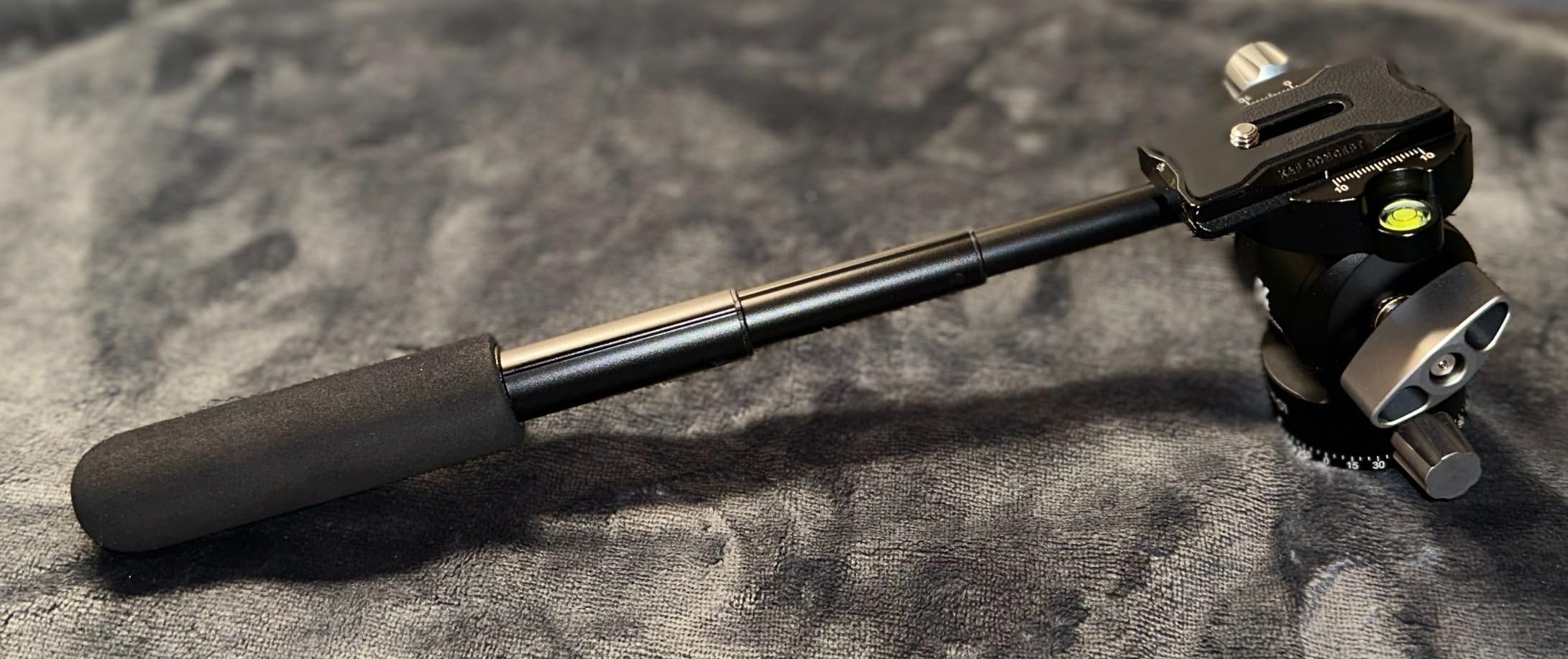 I didn't take a good pic of it mounted, but wanted to share what I had. I decided to mount this on a horizontal tripod arm since I wanted to use the tripod's main mount for a light stick. At a loose setting this mount wants to return to level, and is very smooth responding to inputs. As you'd expect the locking knobs do a good job of adding resistance or locking down movement. Compared to heads I've used in the past his one feels very smooth and appears to be well made.