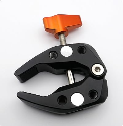Clamps like this one should be in every videographer’s bag. This one is a great quality build with 10 ¼” threaded wells to add just about anything you need to your set. The clamp opens wide and has protective rubber padding on the inside. Everything is machined perfectly. I use these clamps on tripod stands, overhead bars, and tabletops. It has good gripping and stays where I put it without worry. So simple, so easy to use, and so necessary for solutions when filming. Plus, it is very portable and small. Five stars.