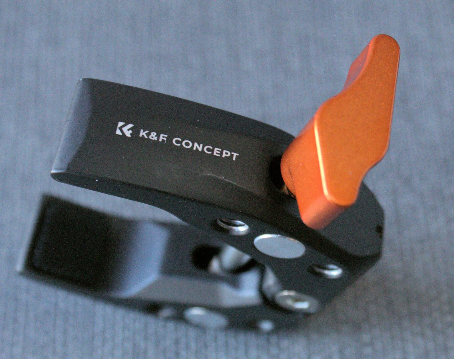This K&F MS15 super clamp is milled from solid aluminium alloy and has a feel of strength about it. The jaws have rubber pads on them so that they can grip whatever you put there and the jaws can spread so that they can clamp onto bars up to a diameter of 6cm.