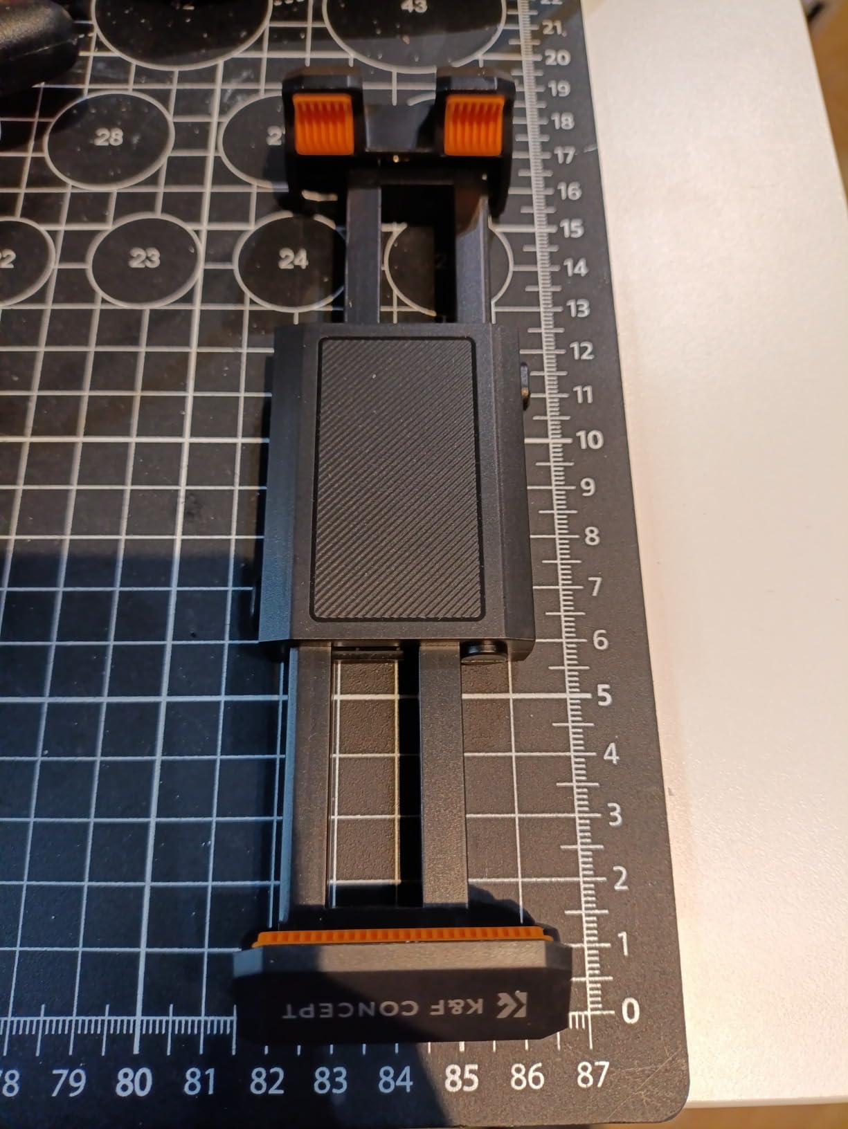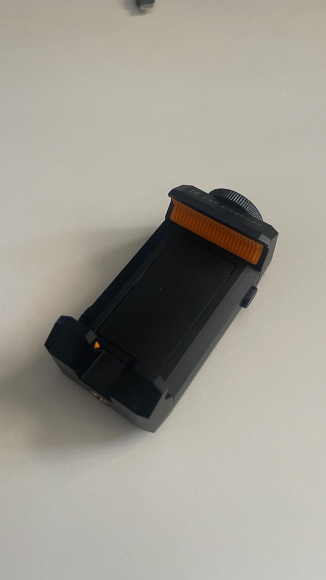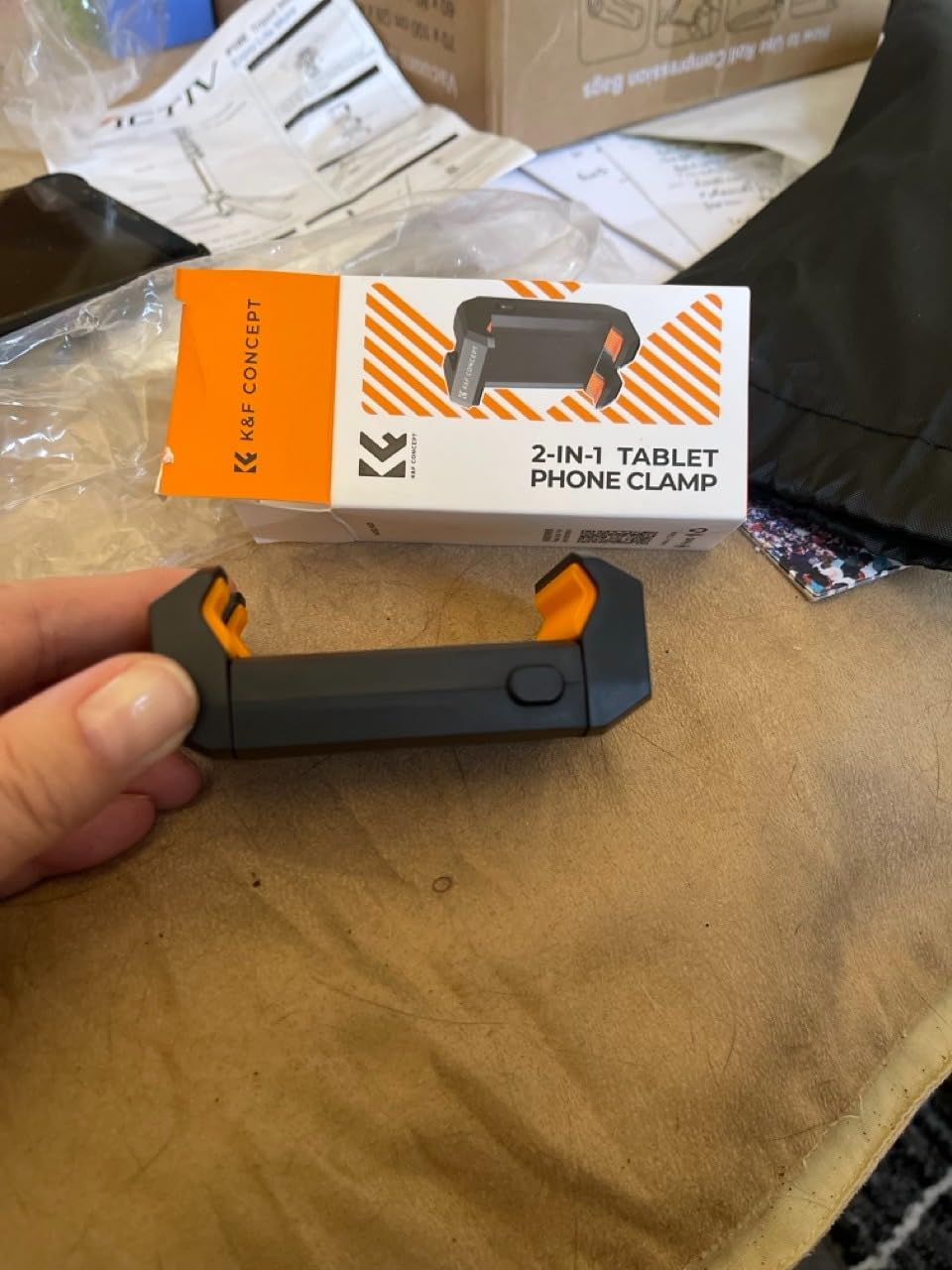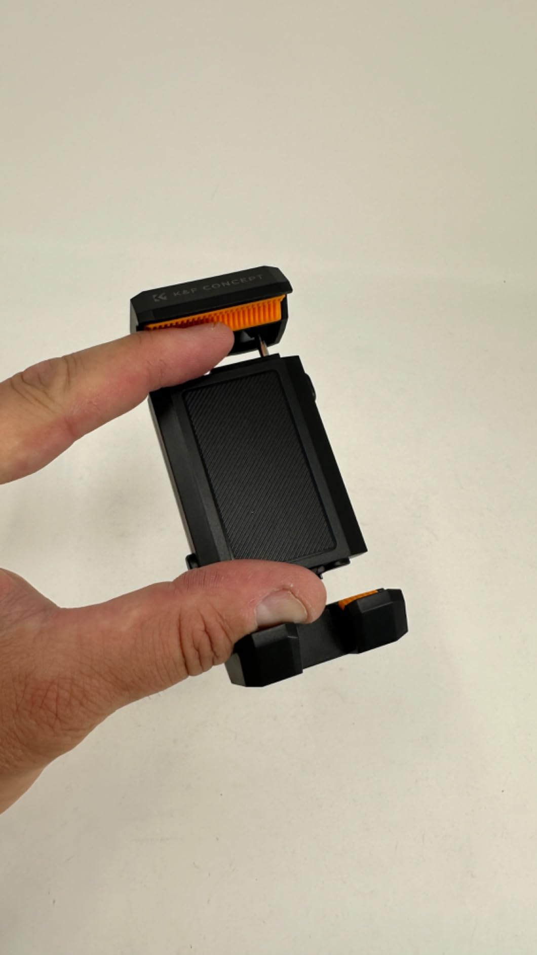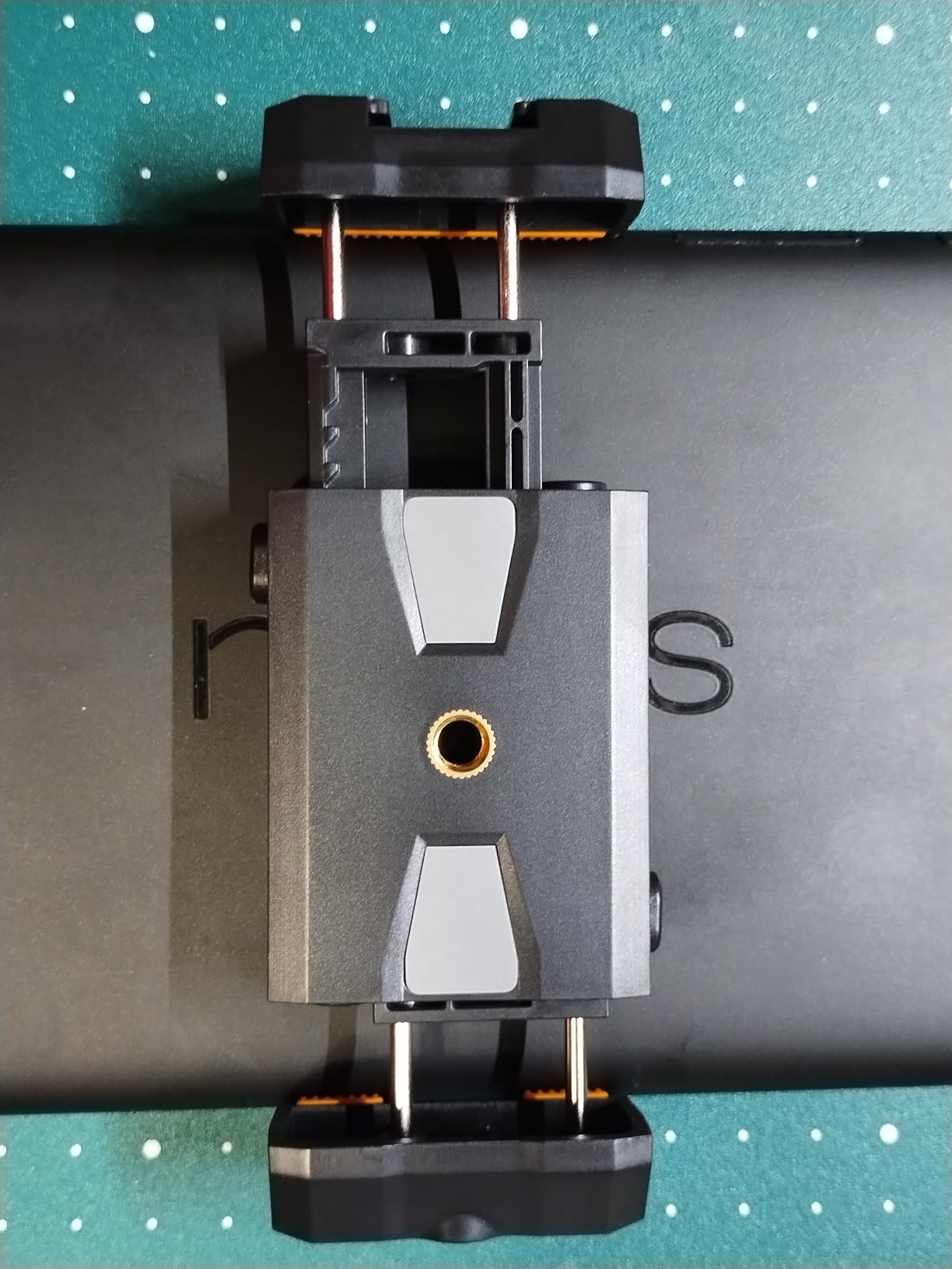 This holder is amazing. It has spring-loaded jaws - with a difference. Press the release button(s) and one or two arms holding the spring-loaded jaws can be extended from the main body, increasing the size of the device it can hold. The one downside as you can see from my photo is that the jaws are smaller than I would like and they don't have a good grip on my SmallRig iPhone 15 cage. Wish the jaws were just a bit bigger.