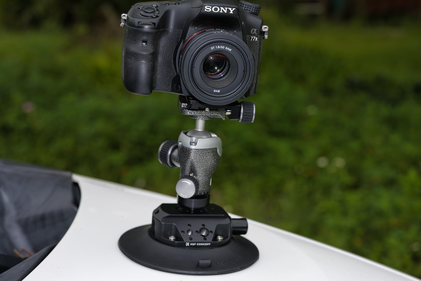 I've been really impressed with this suction cup mount so far. It's solidly built, made entirely of metal, which gives it a premium feel. The included magic arm is also well-constructed and feels very sturdy. The suction cup itself is quite strong and offers excellent holding power. I've used it with my Sony a6700 without any problems. For flat, stable surfaces, I’d say it’s more than capable of supporting an average-sized DSLR.