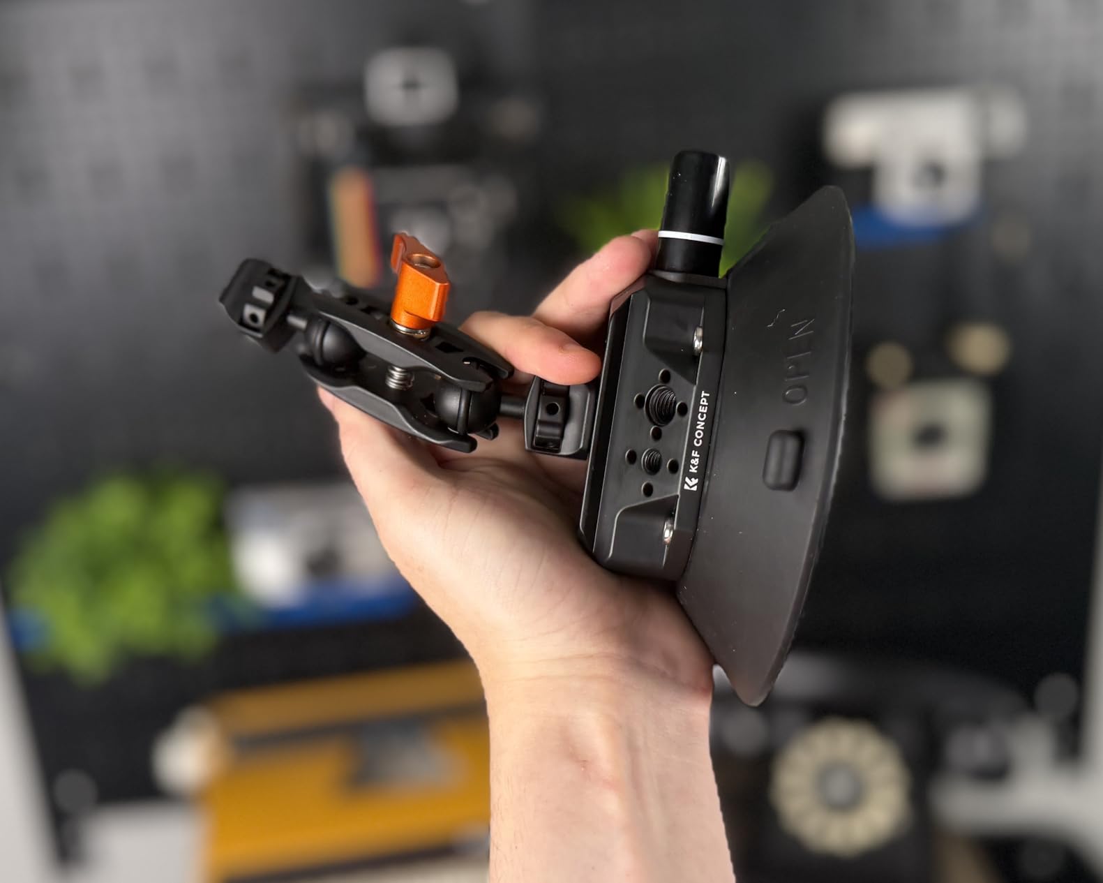 Build quality is solid overall. Nothing about it feels cheap. The suction base is sturdy, the arm is metal, and the knobs feel strong when you tighten them. I’ve adjusted it a ton while figuring out shots, and nothing has loosened or started to feel flimsy. I’ve had some cheaper mounts where the plastic threads strip after a couple uses—this doesn’t feel like it’s going to do that. It definitely feels like something I’ll be able to use for years, not just a “one project” kind of thing.