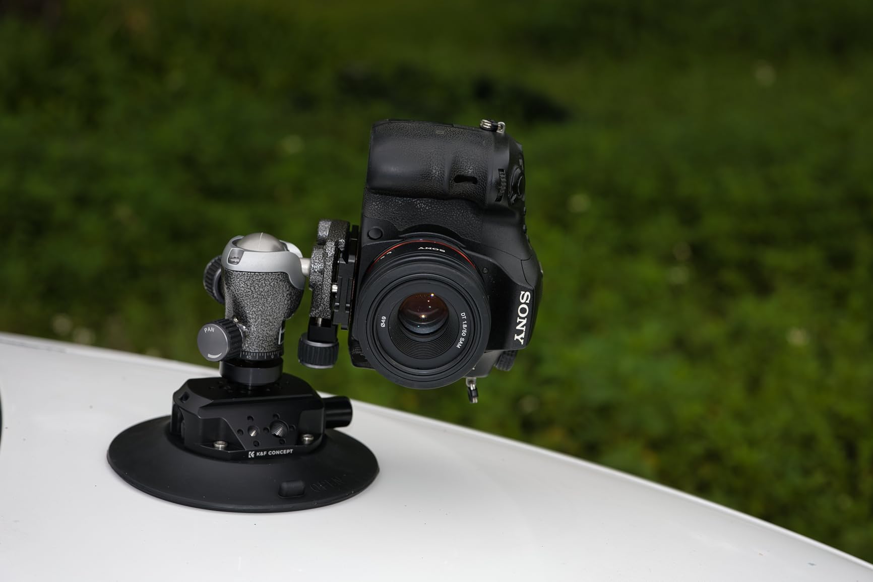 The main part is the vacuum clamp. It's as good as some I have for lifting large glass sheets, so really very good for a camera. You'll need a fairly flat surface that's smooth and able to take the clamp all round without leaking, but that's most car panels, windows, even smooth painted walls. Very strong suction indeed.