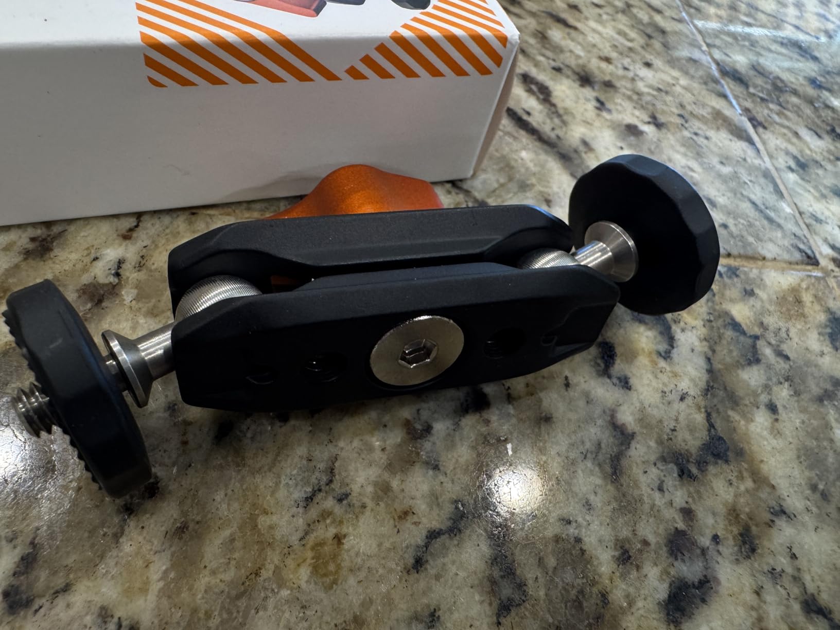 It's small, compact, feels really good in my hands, and does a simple job elegantly ... which is connecting two things together at adjustable angles. I couldn't be happier. I'm almost hesitant to put it back in my camera case because it's so much fun to play with during zoom meetings. Smooth movement, but also tight locking. And the tightening knob is crafted to fit your fingers (especially if you're right handed).