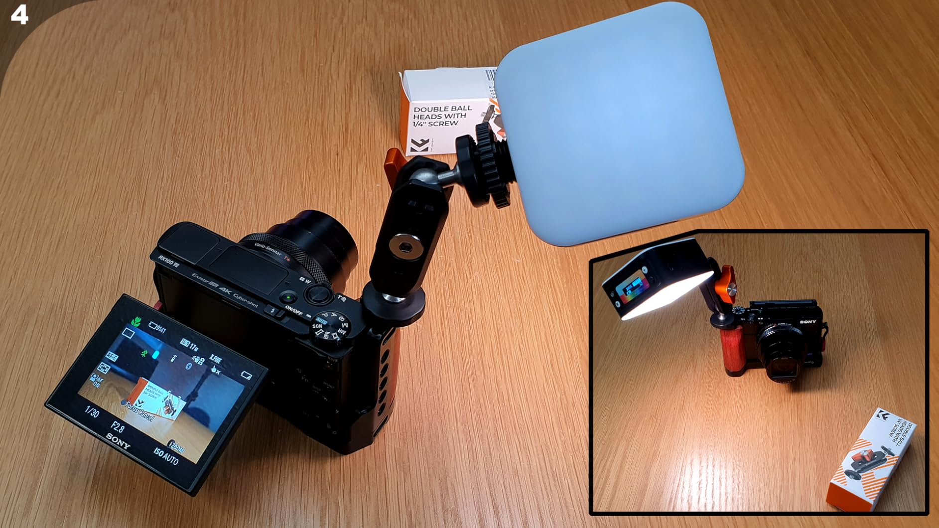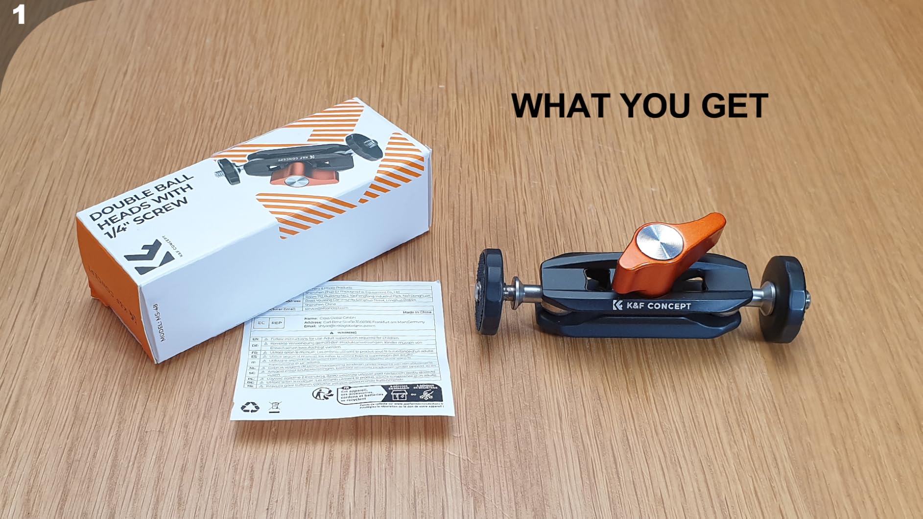 It adapts to a wide variety of devices, including DSLRs, action cameras, LEDs, flashes, and microphones, using 1/4" screws on both ends. The double ball heads provide 360° rotation and 180° wing movement, making it easy to adjust to any shooting angle.