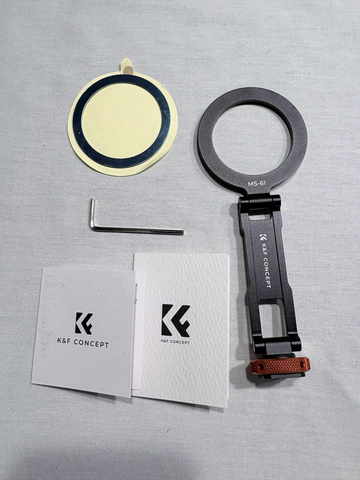 - * 【Wide Compatibility】K&F Concept Magnetic Metal Phone Mount MS61 is designed for iPhone with the function for Mag Safe (iPhone 16/16 Pro/16 Pro Max/15/15 Pro/15 Pro Max/14/14 Pro/14 Pro Max/ 13/13 Pro/13 Pro Max/12/12 Pro Max) and Mag Safe cases. For non-Mag Safe phones, use the included metal ring for easy attachment.