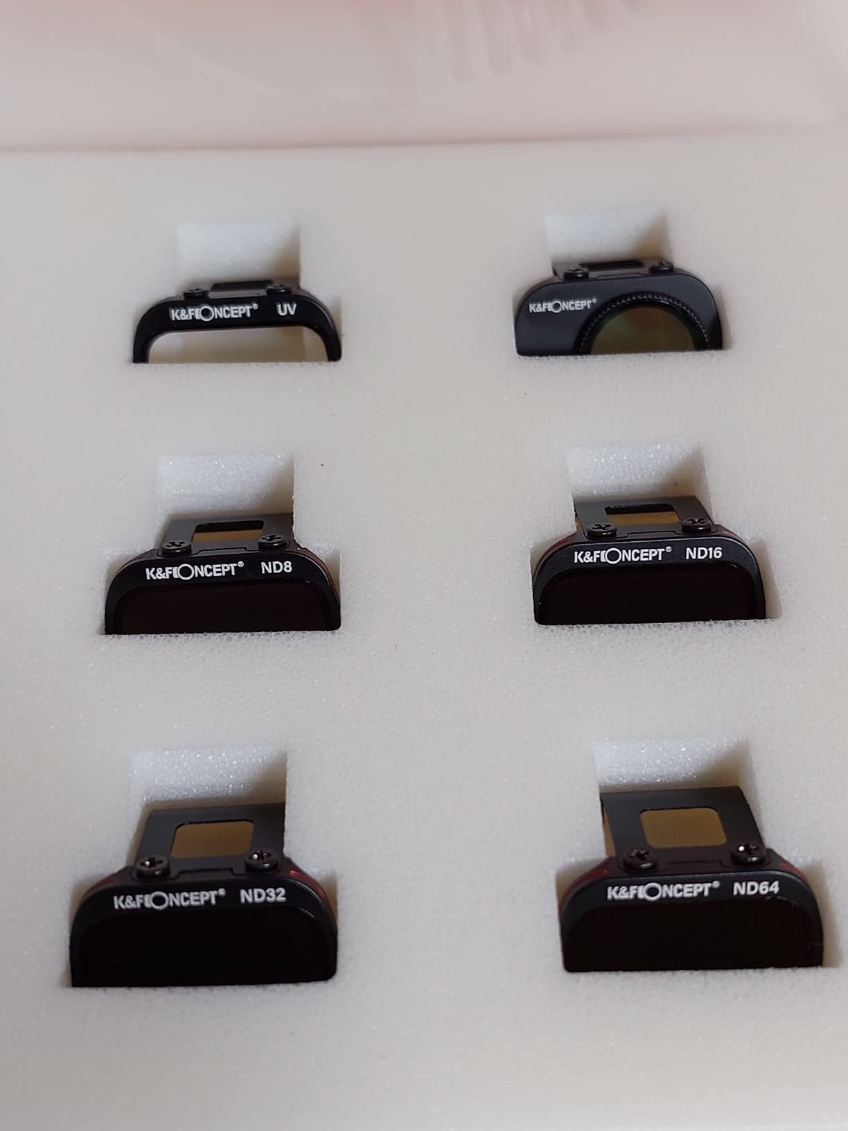 After a long search and cheaply processed Chinese parts, I have finally found a high-quality set of filters for my Dji Mini 2. The frame is made of aluminum and fits perfectly. See photos. Nothing wobbles, no fumbling and you don't torture yourself during assembly. Ok, you should show some fine motor skills when you put them on the gimbal but otherwise, as I said, very easy because it fits perfectly. Tip: Cotton gloves avoid greasy fingerprints. Handy if you often change filters on the go. K&F is a manufacturer of various aperture filters in the professional field of photography. Accordingly, the quality has failed. Just great. Image material of my videos is therefore first class. There are filters for all imaginable lighting conditions in the storage box. By the way, this is made of transparent plastic and lined with foam. The filters are protected in a practical and space-saving way. In terms of price, the large set is really worth every cent. At the latest when you look at his videos, you are not happy that you have saved money in the wrong place. My conclusion: If you are looking for quality, this is the place for you.