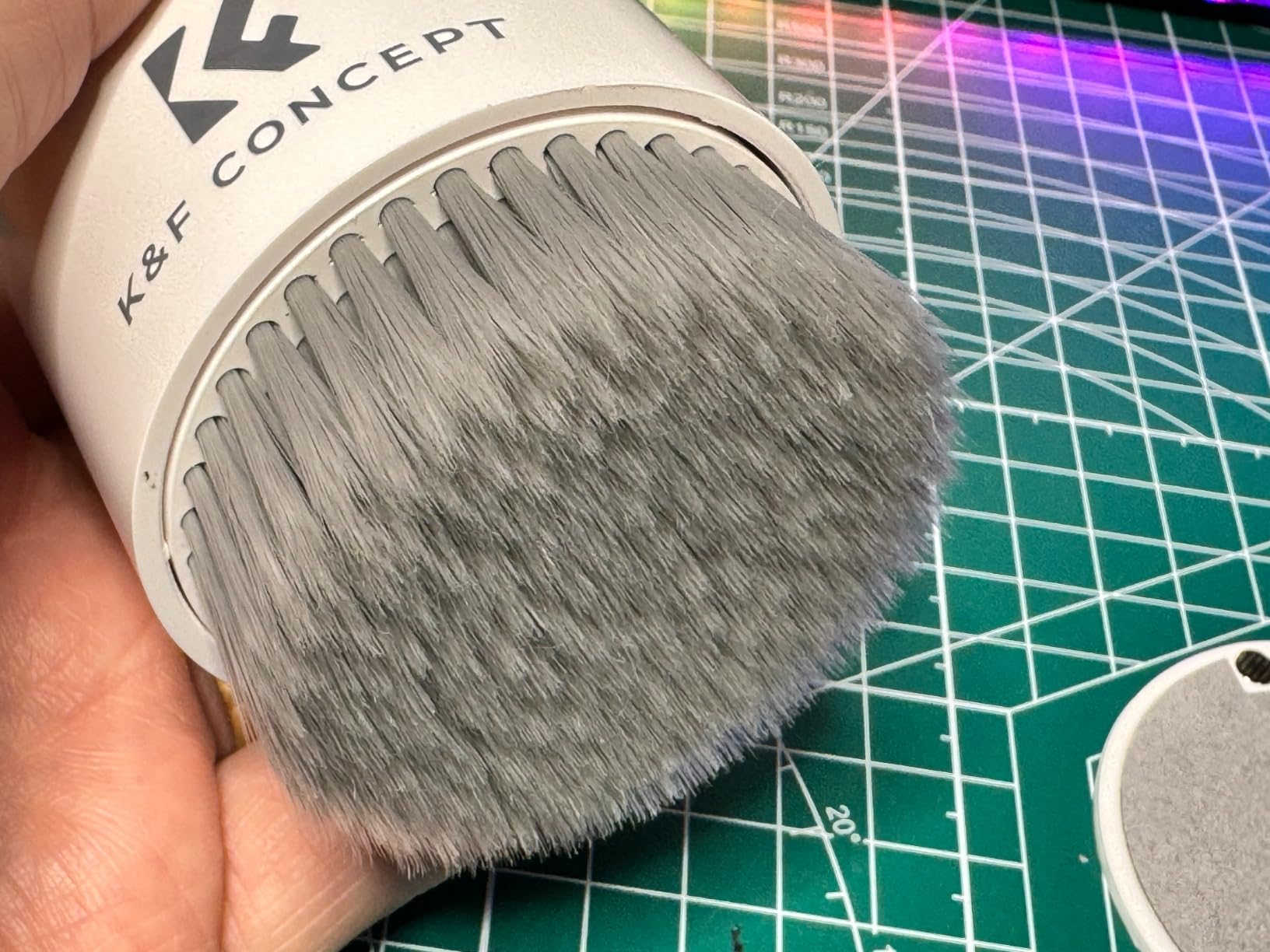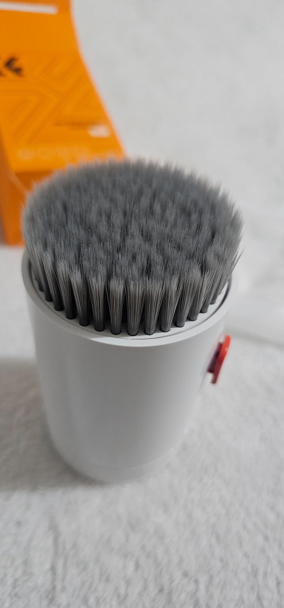 The main brush, which extends out of the bottom of the cylinder, is nice and soft at the tips with some firmness to the bristles so they get into the nooks and crannies of your keyboard.