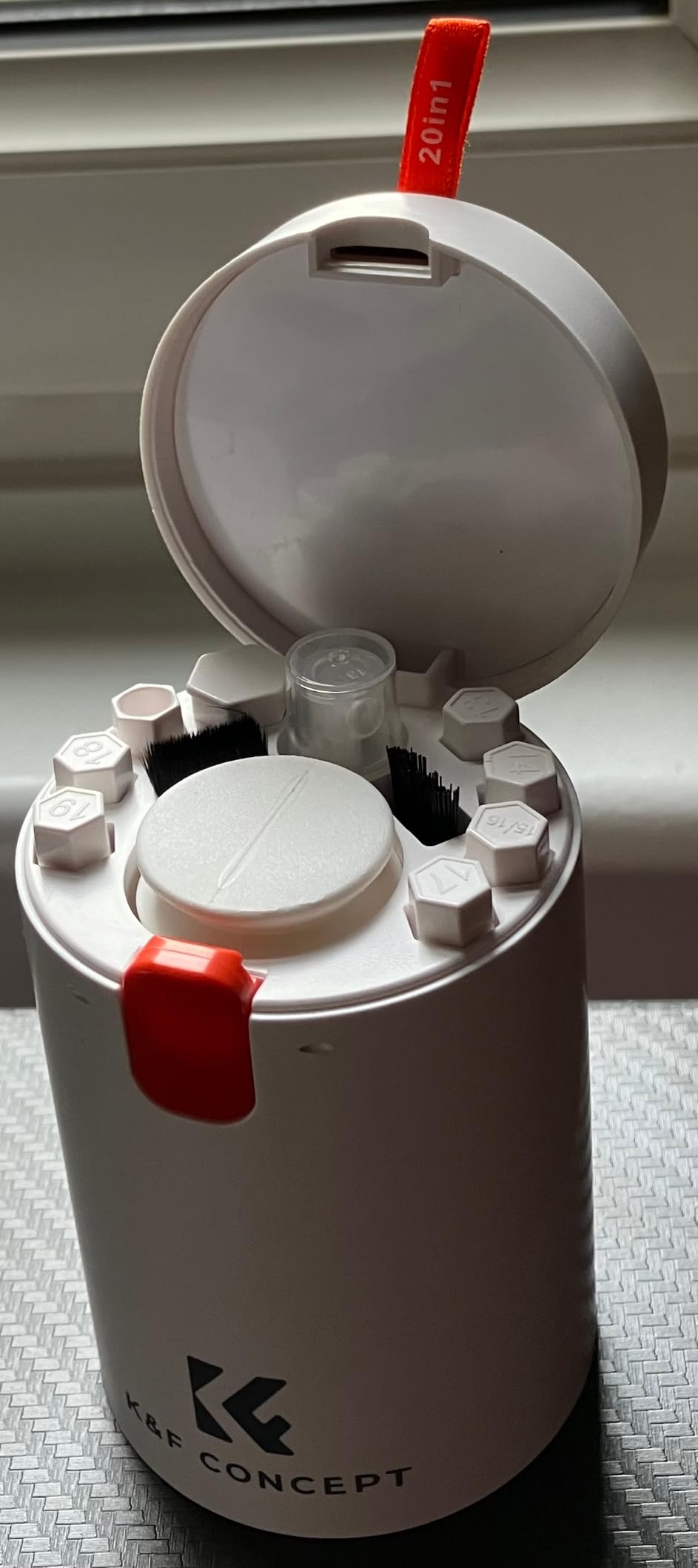 There are 20 tools cunningly stored in this small barrel shaped cleaning kit. It is very well designed as everything I need for cleaning keyboards and tech is part of this kit. I do try to keep my keyboards clean but am as guilty as the next person at eating and working at the same time so there are always crumbs and dust on my keyboards. This cleaning kit has all the tools you need to make sure you get a really clean finish. I enjoyed trying out all the different tools and have also used this kit to clean my e-reader, monitor, camera and mobile. I have had other kits in the past but I love the way this K&F cleaning kit contains all the tools and is totally portable. I can see this lasting so much longer as the bits all have a place to fit into. I would recommend this cleaning kit, it certainly has made a difference to my keyboards etc.