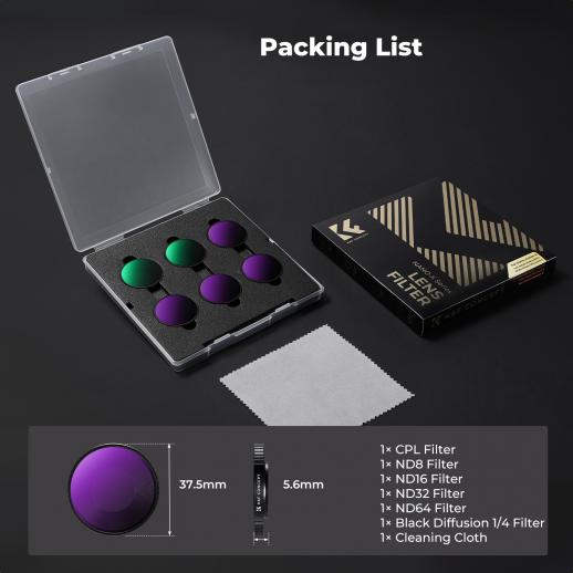 K&F CONCEPT CPL+ND8+ND16+ND32+ND64+Black Diffusion 1/4 Filter for Action 6