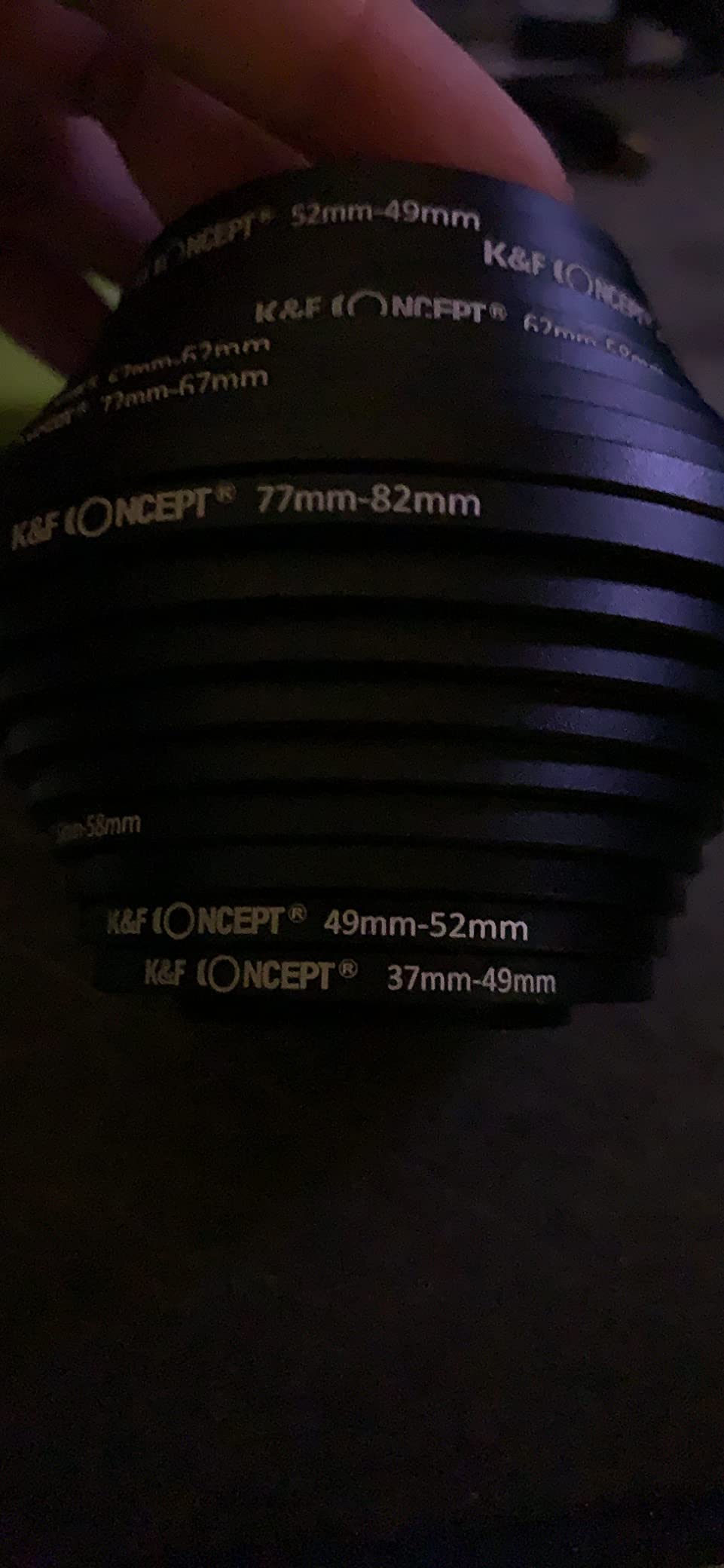 - * Kit Includes:Step Ring 37-49mm 49-52mm 52-55mm 55-58mm 58-62mm 62-67mm 67-72mm 72-77mm 77-82mm 49-37mm 52-49mm 55-52mm 58-55mm 62-58mm 67-62mm 72-67mm 77-72mm 82-77mm