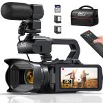 6K Video Camera Camcorder 64MP Photos, Built-in WiFi, 4in Flip Touchscreen, IR Night Vision, Mic & 64GB Card Included, for Vlogging, Filmmaking, Kentfaith