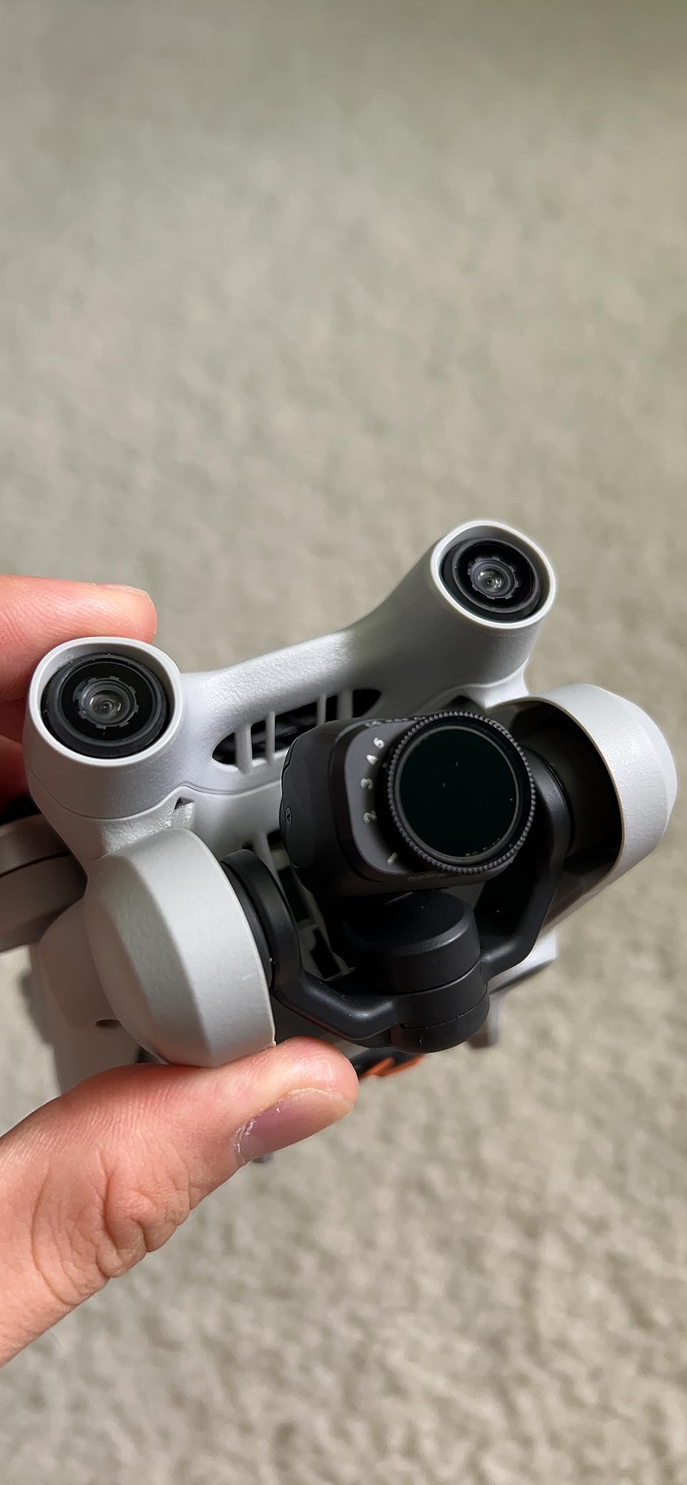 This way you can keep it on and if you need to adjust just bring the drone down turn it to get more or less ND and send it back up