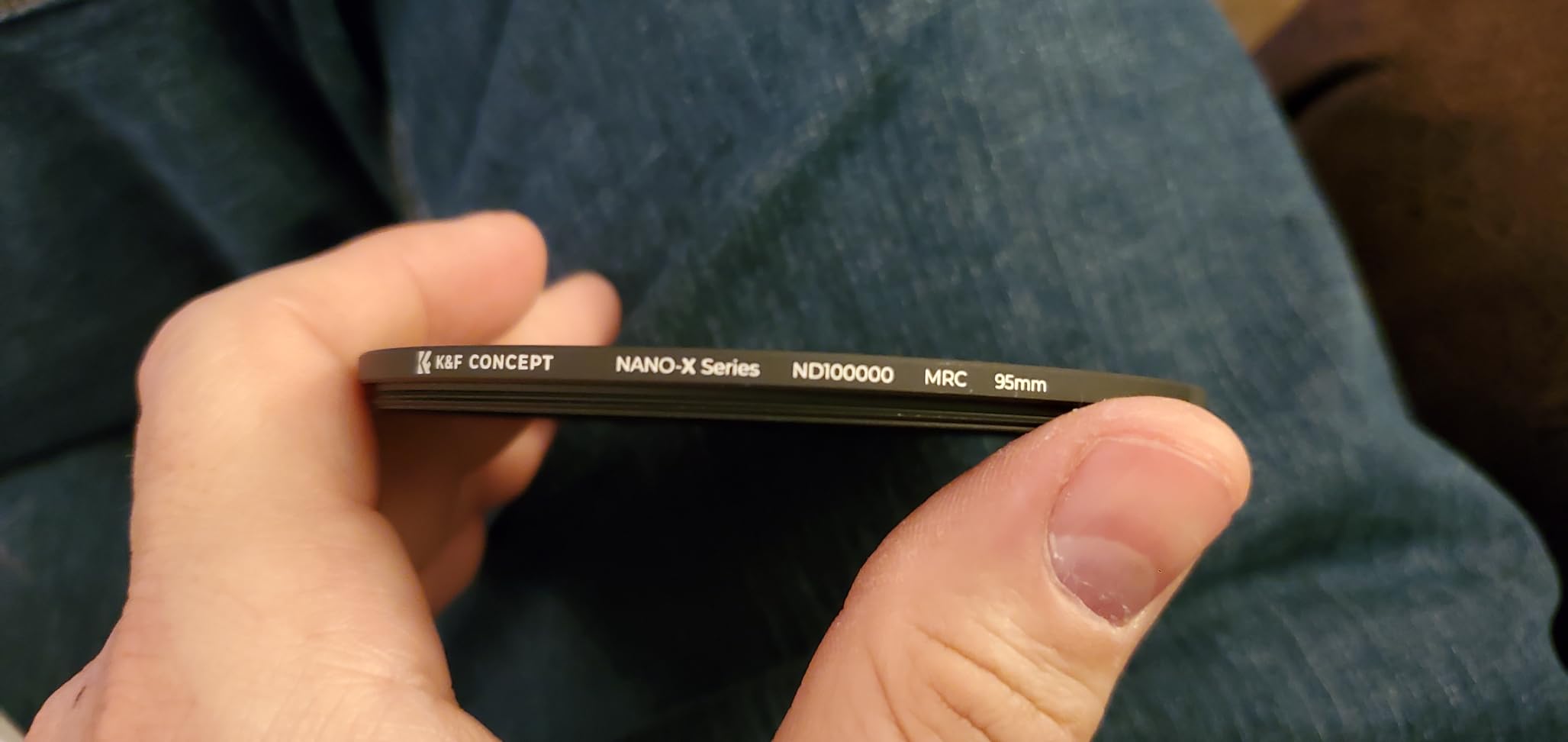 So in the end, I'm not going to chance it. However, I may find some use for this filter in extreme long-exposure photography. I briefly attempted to play around with this handheld, but 16 stops is a LOT, and I was looking at exposures over 8 seconds (at ISO 3200!) just to get something that wasn't completely black.