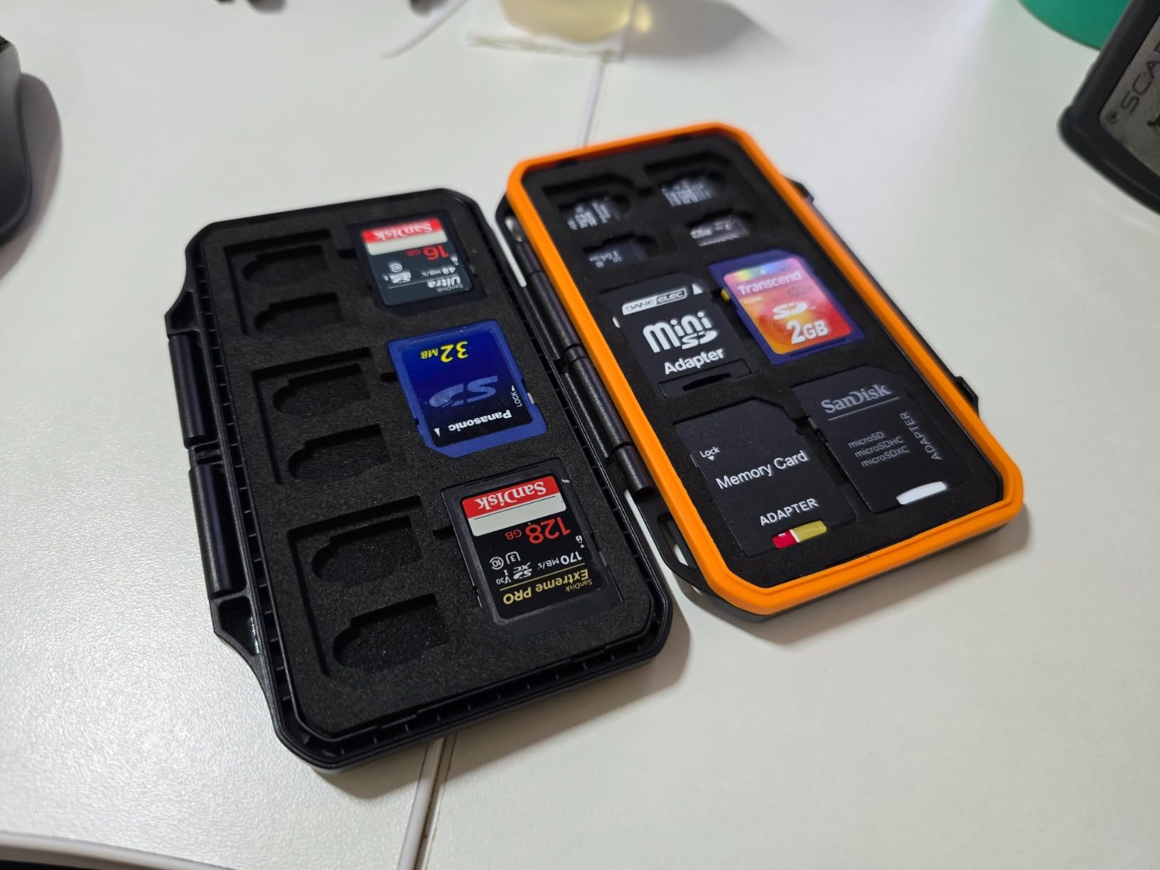 Great way to store 12 full size SD cards and 24 Micro cards to minimise risk of loss or water damage
