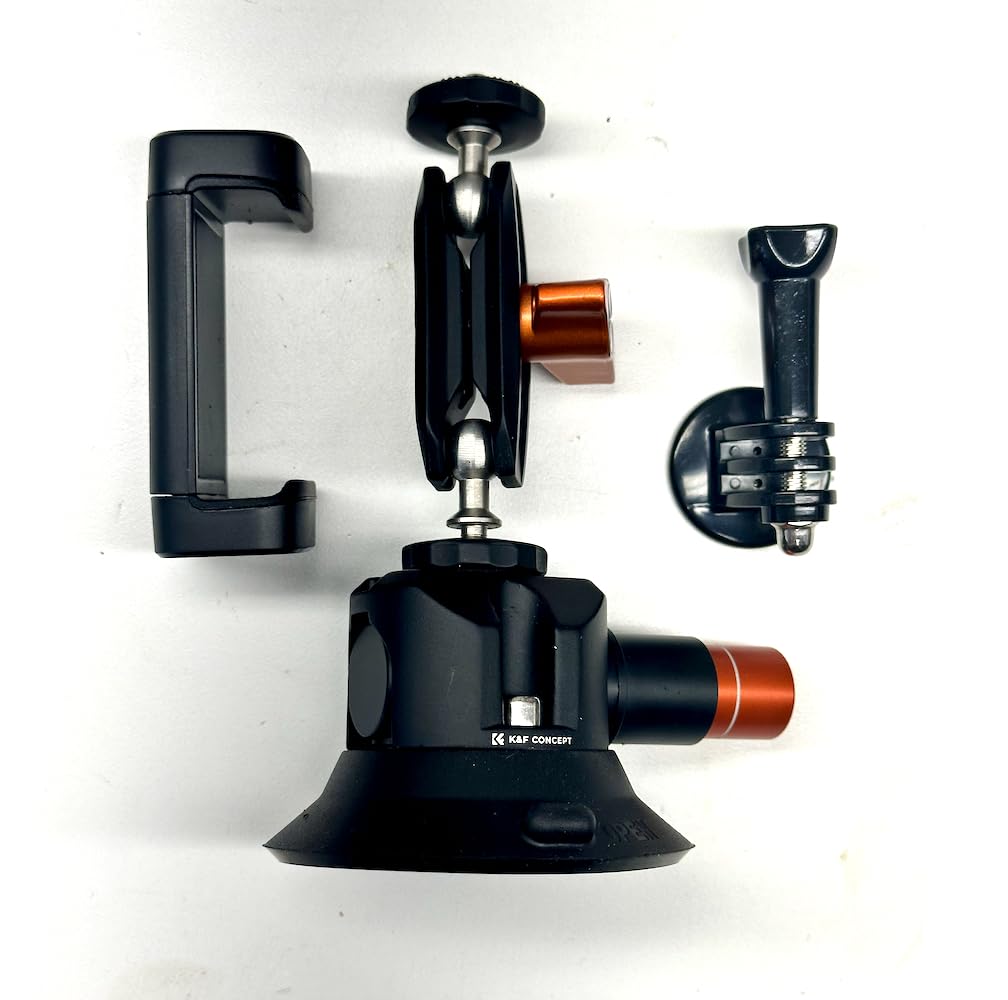 Review for: "K&F Concept 3" Suction Cup Camera Mount with Magic Arm for Car, 1/4" ARRI Holes, Dual Ball head Magic Arm with Phone Holder and Action Cam Adapter Compatible with DJI Go Pro Hero 13 Insta360 X5 iPhone"